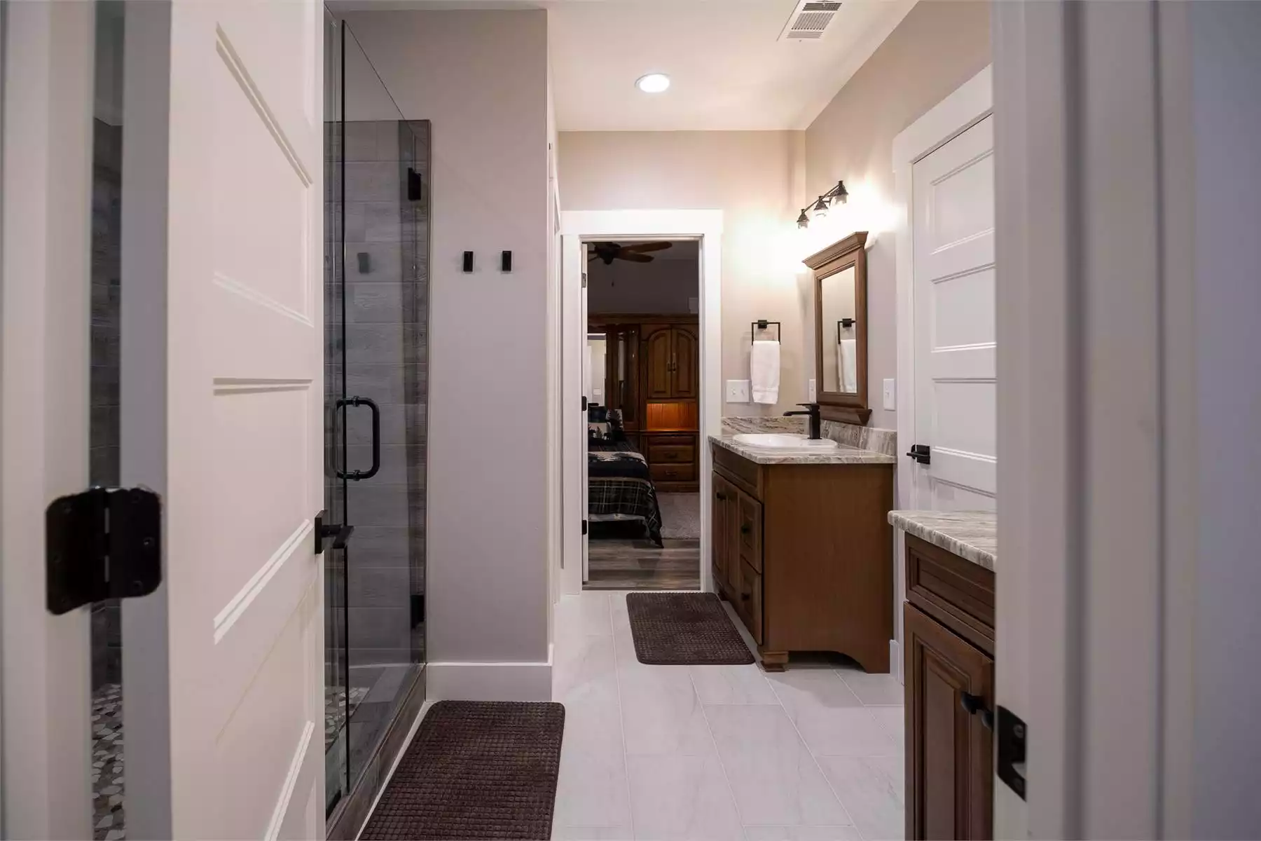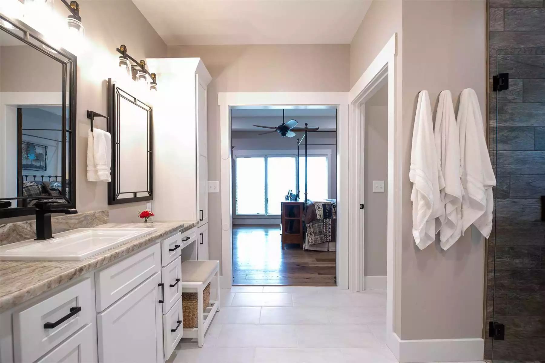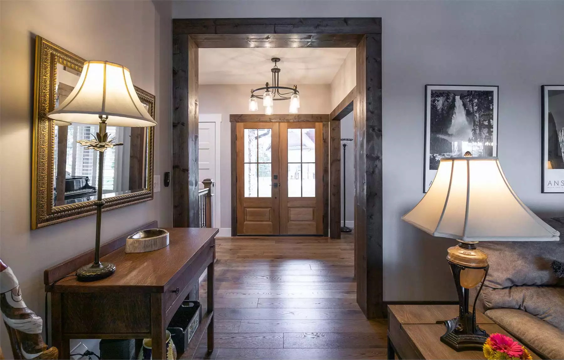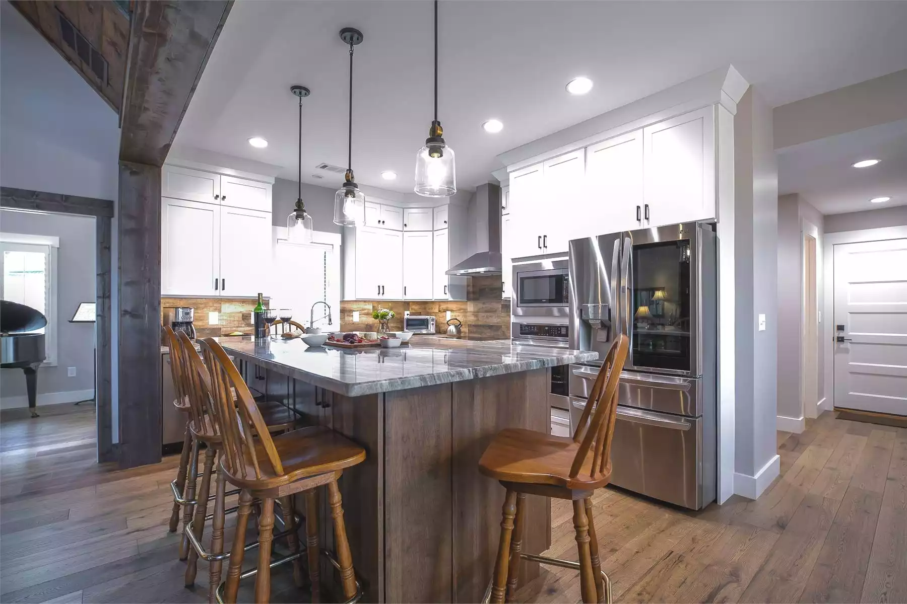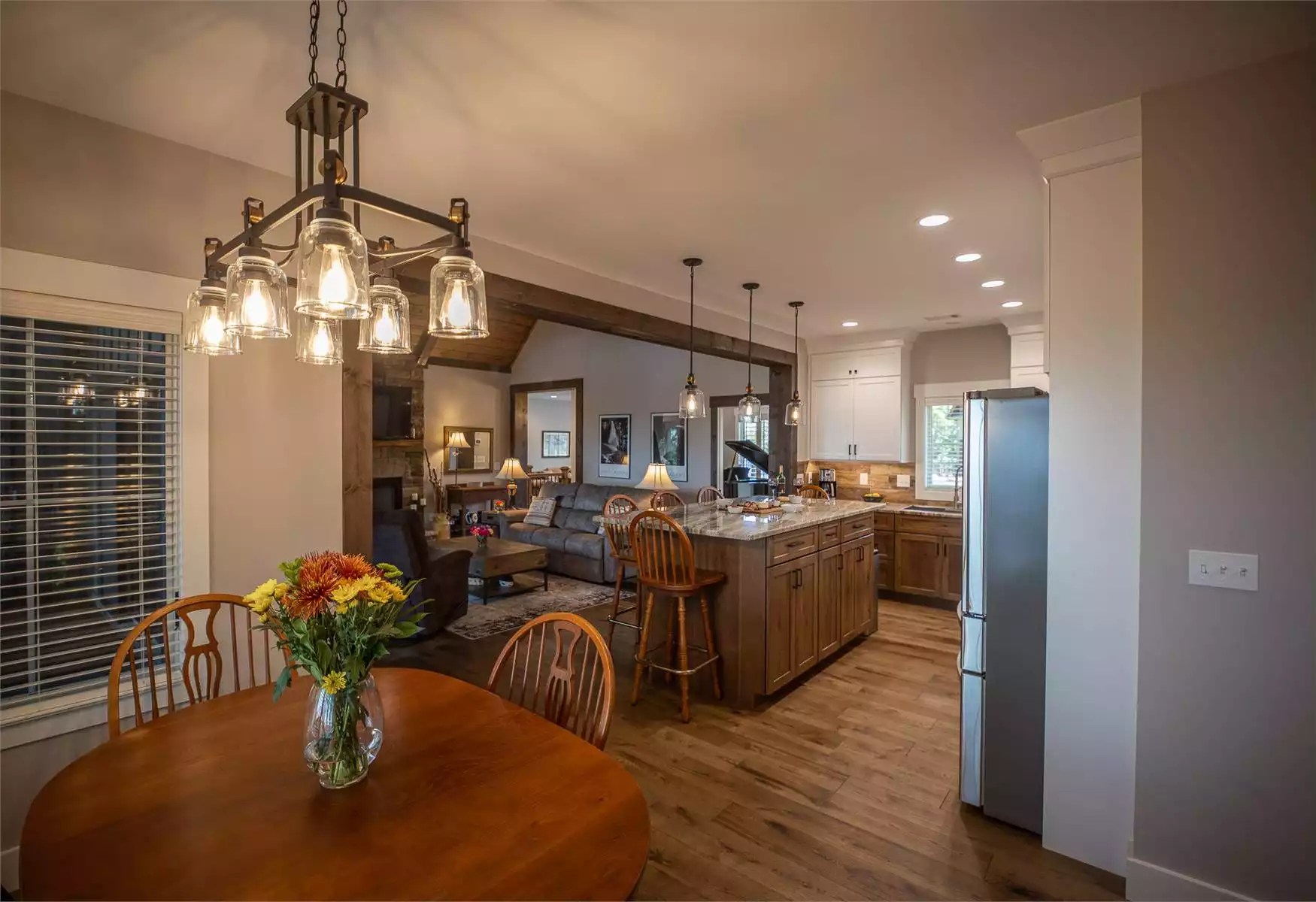 Beautiful Mountain Cottage with Wood and Stone Facade View Interior & Exterior Customer Built New Home Tour! Front View Side-Entry Garage Featuring Clopay® Garage Doors Right Side View with Hardie® Panel Siding Double Rear Decks Offer Lots of Entertainment Possibilities Aerial View Showing GAF® Shingles Front Entry with Wood and Stone Features Foyer Seen from Family Room Large Windows for Views in Family Room Family Room with Trussed Vaulted Ceiling Family Room Open to Kitchen Family Room Family Room Kitchen with Island Seating & Pendant Lighting Kitchen Island Overlooking Family Room Kitchen with Sink Overlooking Front Yard Kitchen Open to Sunny Dining Nook Kitchen Cooking Area Featuring Whirlpool® Range Hood Whirlpool® Microwave Installed with Built-in Trim Kit Dining Nook with Rear Views Dining and Kitchen Hallway to Garage and Stairs to Bonus Space Vaulted Lanai with Transom Windows & Corner Fireplace Lanai with Wood Paneled Ceiling & Expansive Rear Views Lanai View from Primary Bedroom Featuring Therma-Tru® Doors Primary Bedroom with Stepped Ceiling Barn Doors Open to Private & Luxurious Ensuite Primary Bath Primary Bath with View into Walk-In Closet Primary Bath with View into Primary Bedroom Primary Bath Vanity with Makeup Counter Primary Shower Featuring Wood-Look Tile & Delta® Fixtures Primary Den Beside Foyer Primary Den Work & Lounge Space Primary Den View of Front Yard Music Room by Foyer Music Room with Access to Front Porch & Family Room Music Room Seen Through Porch Door Entryway Stairway to Lower Level Finished Basement Finished Basement with Lots of Natural Light Walkout Basement Family Room Walkout Basement Opens into Outdoor Living Lower-Level Deck with Main-Level Lanai Above Walkout Basement Family Room Looking Toward Kitchen Lower-Level Kitchen Featuring Whirlpool® Appliances Lower-Level Kitchen with Ample Counterspace Lower-Level Dining or Game Area Bedroom Suite Located on Lower Level Bedroom Suite Located on Lower Level Basement Jack & Jill Bath with Additional Hall Access Second Basement Bedroom Suite Second Basement Bedroom Suite Basement Exercise Room Bonus Room Above Garage Flexible Bonus Room Used as Guest & Office Space Bonus Room with Unique Ceiling & Gable Windows Bonus Room Bathroom Front Rendering 1st Floor Basement Plan Bonus Plan