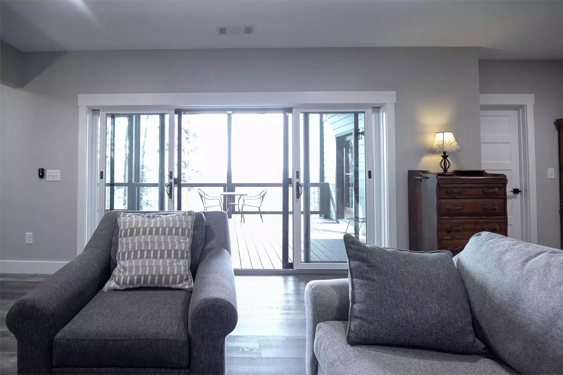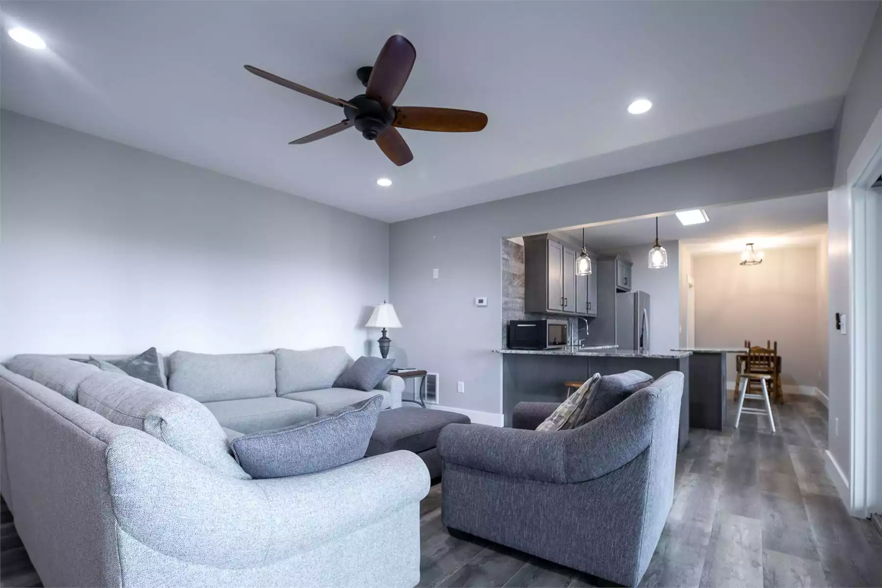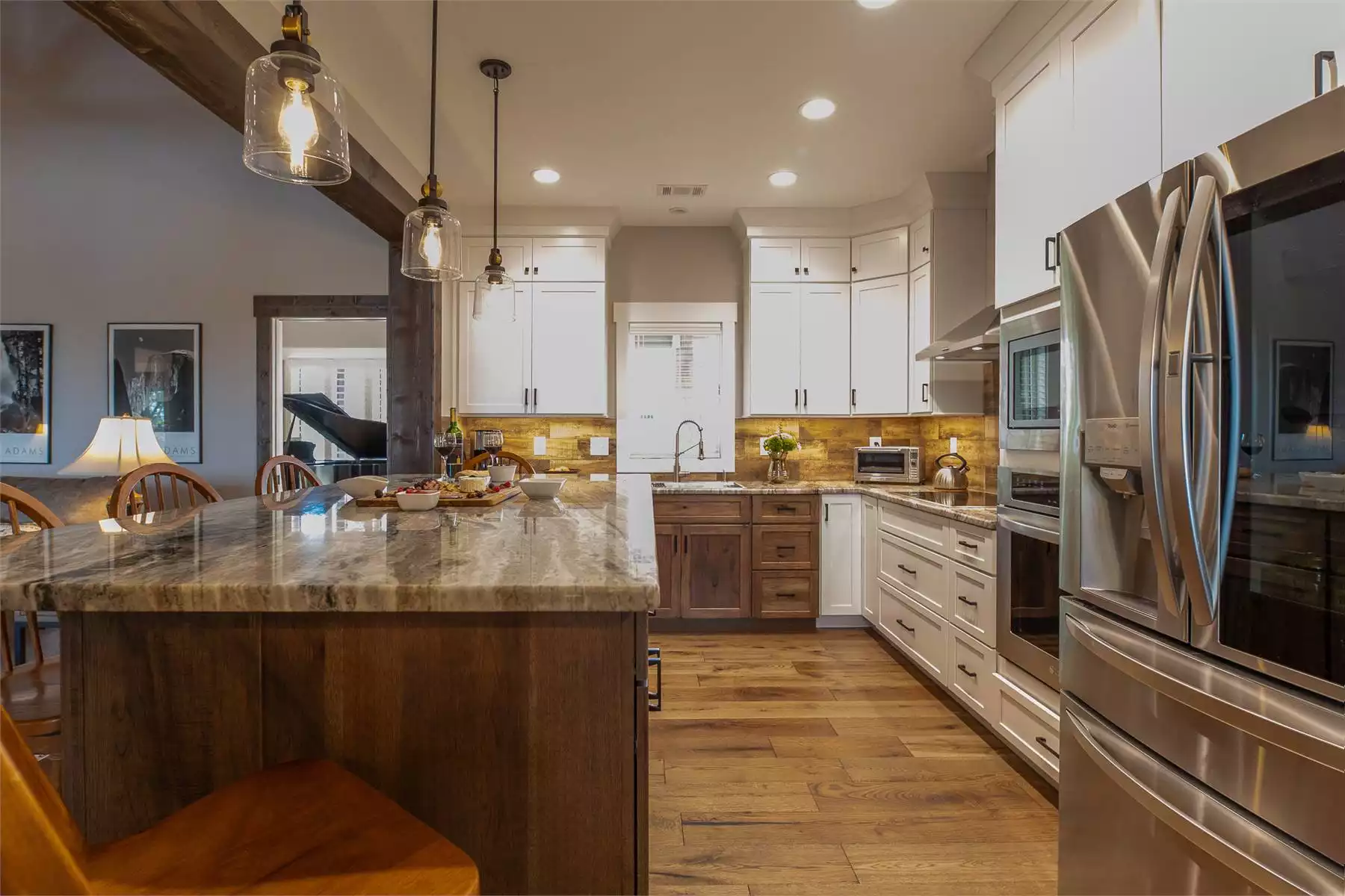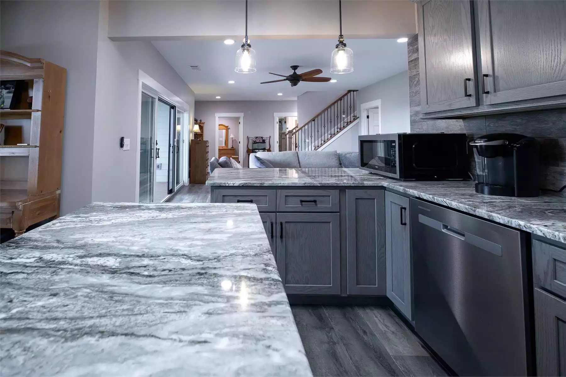 Beautiful Mountain Cottage with Wood and Stone Facade View Interior & Exterior Customer Built New Home Tour! Front View Side-Entry Garage Featuring Clopay® Garage Doors Right Side View with Hardie® Panel Siding Double Rear Decks Offer Lots of Entertainment Possibilities Aerial View Showing GAF® Shingles Front Entry with Wood and Stone Features Foyer Seen from Family Room Large Windows for Views in Family Room Family Room with Trussed Vaulted Ceiling Family Room Open to Kitchen Family Room Family Room Kitchen with Island Seating & Pendant Lighting Kitchen Island Overlooking Family Room Kitchen with Sink Overlooking Front Yard Kitchen Open to Sunny Dining Nook Kitchen Cooking Area Featuring Whirlpool® Range Hood Whirlpool® Microwave Installed with Built-in Trim Kit Dining Nook with Rear Views Dining and Kitchen Hallway to Garage and Stairs to Bonus Space Vaulted Lanai with Transom Windows & Corner Fireplace Lanai with Wood Paneled Ceiling & Expansive Rear Views Lanai View from Primary Bedroom Featuring Therma-Tru® Doors Primary Bedroom with Stepped Ceiling Barn Doors Open to Private & Luxurious Ensuite Primary Bath Primary Bath with View into Walk-In Closet Primary Bath with View into Primary Bedroom Primary Bath Vanity with Makeup Counter Primary Shower Featuring Wood-Look Tile & Delta® Fixtures Primary Den Beside Foyer Primary Den Work & Lounge Space Primary Den View of Front Yard Music Room by Foyer Music Room with Access to Front Porch & Family Room Music Room Seen Through Porch Door Entryway Stairway to Lower Level Finished Basement Finished Basement with Lots of Natural Light Walkout Basement Family Room Walkout Basement Opens into Outdoor Living Lower-Level Deck with Main-Level Lanai Above Walkout Basement Family Room Looking Toward Kitchen Lower-Level Kitchen Featuring Whirlpool® Appliances Lower-Level Kitchen with Ample Counterspace Lower-Level Dining or Game Area Bedroom Suite Located on Lower Level Bedroom Suite Located on Lower Level Basement Jack & Jill Bath with Additional Hall Access Second Basement Bedroom Suite Second Basement Bedroom Suite Basement Exercise Room Bonus Room Above Garage Flexible Bonus Room Used as Guest & Office Space Bonus Room with Unique Ceiling & Gable Windows Bonus Room Bathroom Front Rendering 1st Floor Basement Plan Bonus Plan