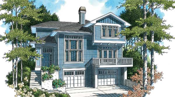 A luxurious master suite, two bedrooms, a bath, and a loft occupy the upper floor. The master suite features a generously sized bedroom with a vaulted ceiling, a bath with both a shower and tub, and a walk-in closet. The loft can serve as a library, home office, or cozy sitting area.