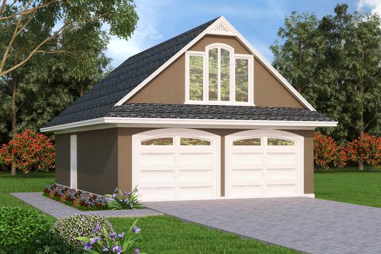If you need extra space, this plan has it all - 2 bay garage, storage and a bonus room. The bonus room has clipped ceilings, lots of glass and built-in book shelves. The garage area is over sized and features double arch top entry doors.