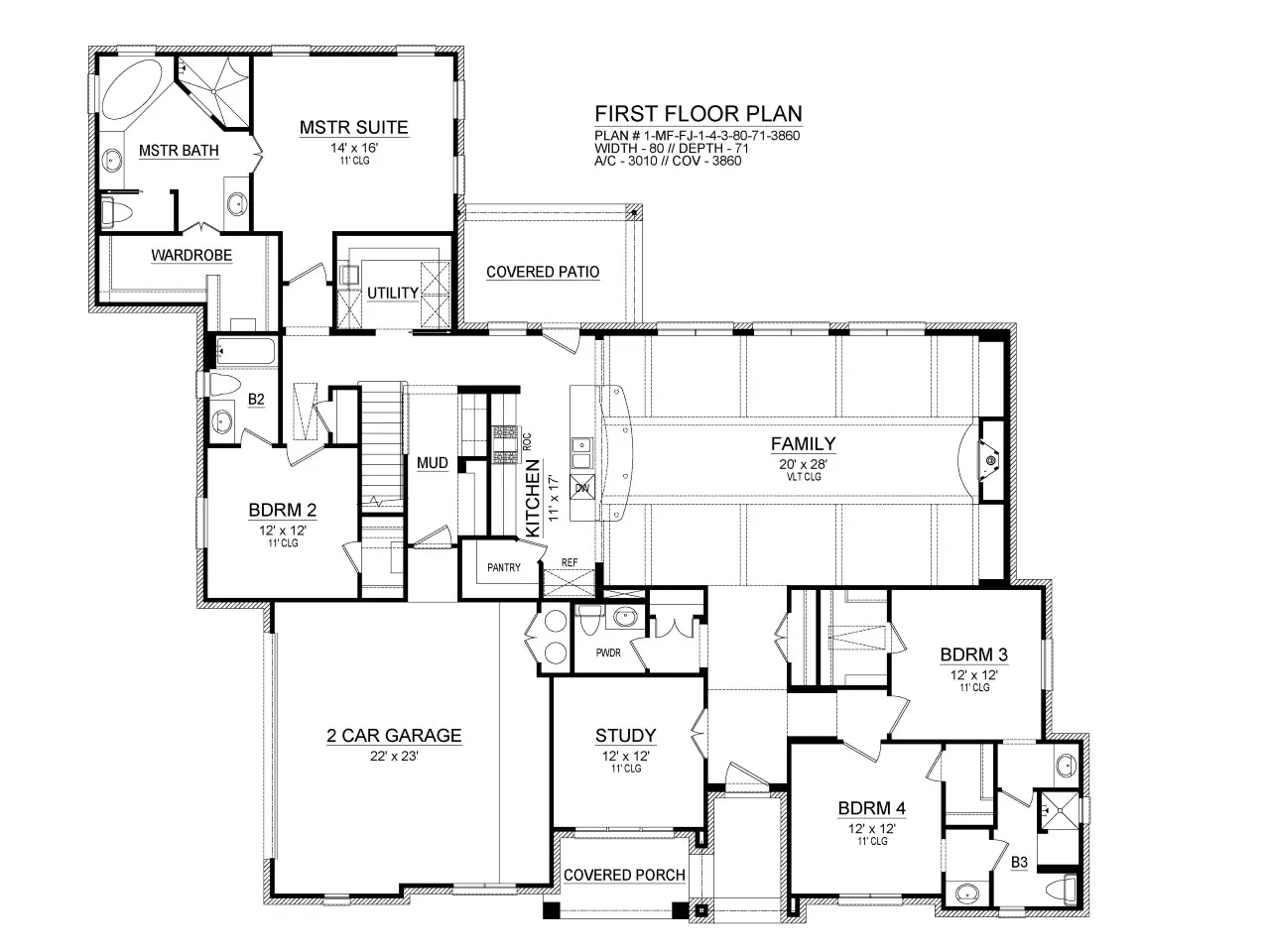 A sloping roofline catches your eye and draws you in towards this charming European home. Designed to capture the timeless rustic charm that both styles offer, this 3,010 square foot plan is the perfect combination of classic character and modern convenience. And with the inclusion of a ranch-style single floor layout, the spaces and rooms are accessible and enjoyable for everyone, regardless of age or ability. Explore the open and bright living room with its vaulted ceilings and nearby eat-in island kitchen. Admire the convenience of areas such as the study and the mudroom off of the 2-car garage. And imagine the stresses of even the toughest days melting away in the private en-suite of the spacious master bedroom.