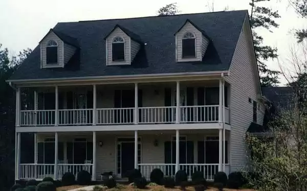 A Southern Plantation comes to mind when approaching this two-story plan, complete with dormers and a stunning double front porch. Perfect for a corner lot, this 2-story, 2,961 square foot home offers a side garage and breakfast room that face the secondary street, giving a unique dual entry to this classic design. The rear stairs lead to the master suite located over the garage, giving you quick and quiet access to the kitchen for that early morning cup of coffee before the kids wake up. The master suite also features dual his and hers walk-in closets, as well as an impressive spa-style bathroom. A rear hall allows the children access to the 4 additional bedrooms and 2 full bathrooms, without tracking through the foyer. This allows the front of the house to remain formal and removed from the bustle of daily life. Back downstairs you will be impressed by this home’s open family room and large fireplace, a great space for some long conversations or cozy get togethers. The nearby country kitchen has plenty of counter space and storage, as well as an eat-in peninsula. A door off of the family room provides access to the home’s deck/patio for easy and convenient outdoor entertaining, while a half-bathroom is a convenient offering for guests and family alike. Overall, this home features a bit of southern charm mixed with modern amenities, creating a plan that is truly like no other.