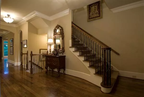 The garage entry flows into a wet bar/butlers pantry with convenient access to the dining room. Upstairs you pass the children's playroom at the landing level taking full advantage of the dropped 3-car garage. Cozy spaces under its eaves provide a doll house and puppet theater.