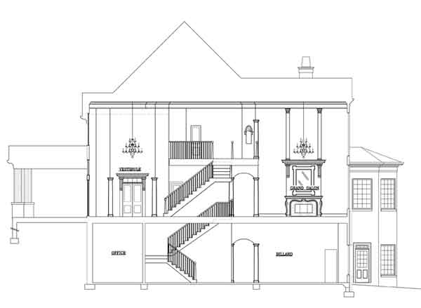 Grand elegance brings out the Southern style of this house plan. The exterior is wrapped in a large sitting porch, accented with columns and open pediments. Inside, a high-style staircase sits in the center of the formal foyer. To either side of the entry are a library leading to the Master Suite, and the spacious dining hall. To the rear of the layout, find the grand salon awash in natural light from the bank of windows gently bowed across the back wall. To the right, gorgeous family spaces include the keeping room with fireplace, morning room with veranda access, and the gourmet kitchen, featuring two work islands and laundry studio. A secluded, first-floor master suite is filled with amenities designed for comfort: generous sitting area with fireplace, an oversized walk-in closet, coffee bar, His and Hers vanities, compartmented commode, soaking tub, and enclosed shower. The second floor provides for two comfortable family suites. The basement contains a Spa Room, Exercise Room, second Master Suite/Option Theatre, Entertainment area, Kitchen, Wet Bar and an unfinished storage area.
