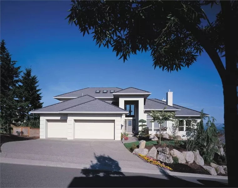 Searching for a home plan that's both distinguished and distinctive? This home will be a stellar attraction in any neighborhood. Straightforward architectural lines and multiple peaked rooflines create a regal aura. Step through the stately front entry and you'll be awed by the elegant and unusual floor plan.