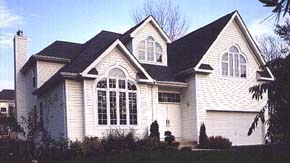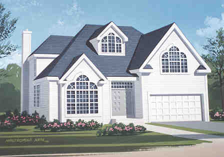 A cheery bay window brightens the breakfast room.The design packs a lot of square footage into a compact footprint.