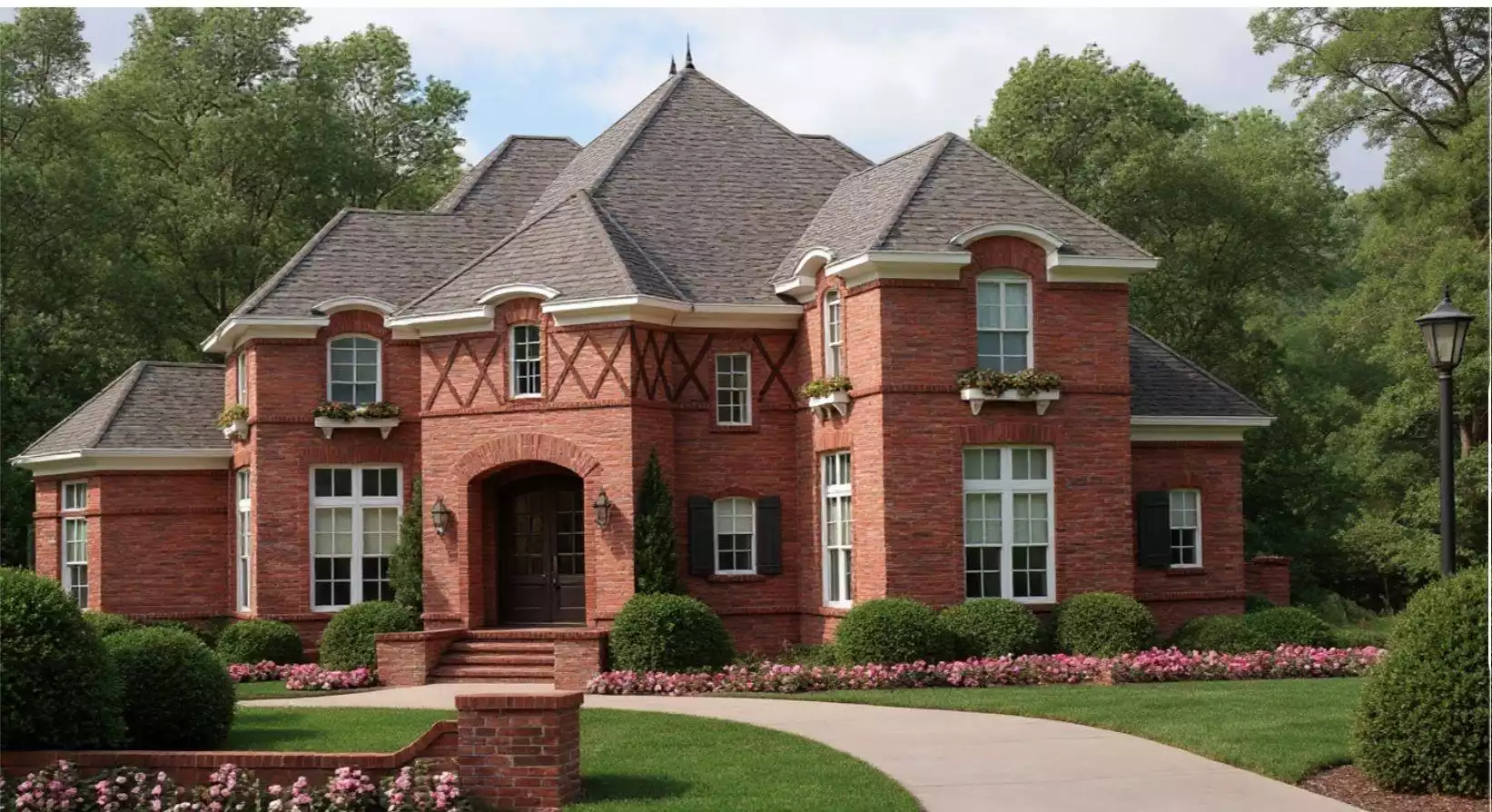 Designed for a pie-shaped or corner lot, this European styled home is a stunner from every angle. The two story Foyer opens to the huge two story Great Room beyond. The Kitchen features an angled sink with a window above for views to the rear yard. A large gourmet island has room for a cooktop and plenty of work space. The Breakfast Room is a sunny bay. The Master Suite opens to a covered rear Porch and includes a luxury Bath with his and hers closets, a corner whirlpool tub and separate shower. A second Bedroom and Bath is conveniently located on the first floor and can be used as a Guest Suite, Nursery or Home Office/Study. Upstairs, two additional Bedrooms share a Bath. An additional room can serve as a fifth Bedroom or a Game Room. Expandable area is available over the two car Garage.