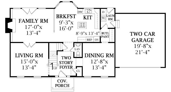 A large family room with a fireplace, a bayed breakfast room and a well-planned kitchen combine at the rear of the home. A work island, an oversized walk-in pantry and nearby laundry facilities add to the kitchen's efficiency.