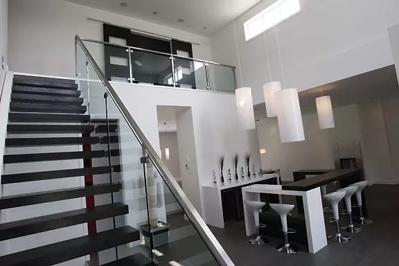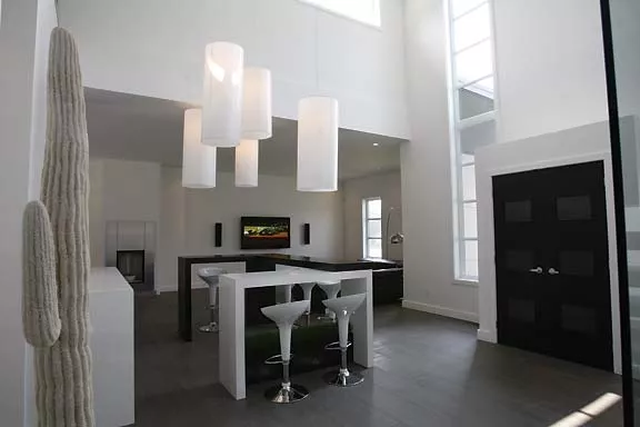 This modern contemporary home offers over 3,000 square feet of living space. The over-sized entrance provides a calm point of entry and transitions to the open-concept living area by three steps down to a space is graced by 10 ft ceilings. Abundant light is ensured by ample windows, especially a 15 foot kitchen window to be enjoyed by the gourmet kitchen and the coveted seats at the kitchen island bar. Upstairs, a large loft includes a master bedroom suite with a private lounge area by the two-sided fireplace, a walk-in closet and spacious bathroom and a fourth bedroom or den. A rooftop deck is the ideal location for coffee and the morning paper or anytime a private retreat is desired. The semi-basement includes two large bedrooms, a games room and bathroom. Other special features include an office adjacent to the kitchen, built-in dining room furniture, and a 3-sided fireplace in the living room. Finally, the most dramatic feature - a two-story window in the entry area which allows for dramatic natural light in the interior! Many foundation options are available.