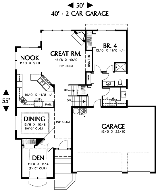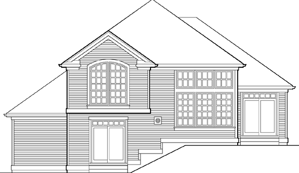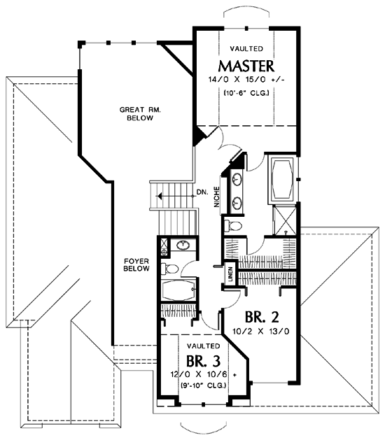 door. It adjoins a bath with a shower. A dream suite on the top floor includes a large bedroom with arch-top windows, a luxurious bath with both shower and tub, and a walk-in closet. A decorative niche in the upstairs hall faces a half-wall that overlooks the great room.