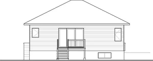 The exterior of this one-story design has a modern, up-to-date feel. The interior offers an inviting great room, perfect for good conversation. The kitchen's island incorporates a snack area for two. The lovely dining area is suitable for casual or formal meals. A good-sized bath lies between the two bedrooms. Note the stairs that lead down to the lower level, where there is plenty of space for another bedroom and a family room.