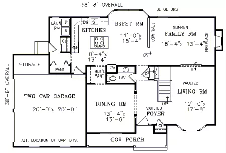 Reverse house plans with readable text and dimensions