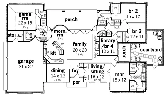 Designed for larger sites, this home has beautiful curb appeal. The kitchen, dining, family and living all feature 12' ceilings. The game room has a tray ceiling and wet bar. The library converts easily to a fourth bed room.
