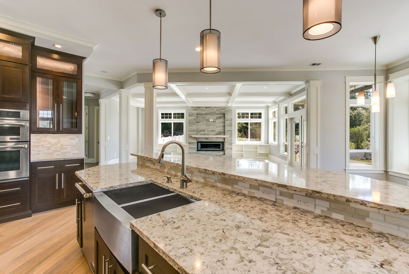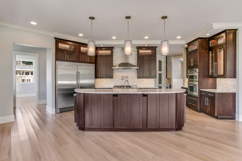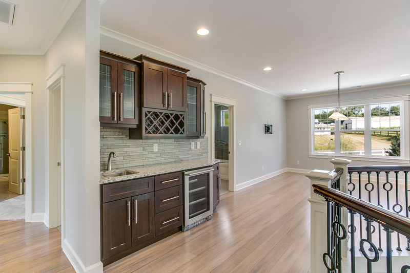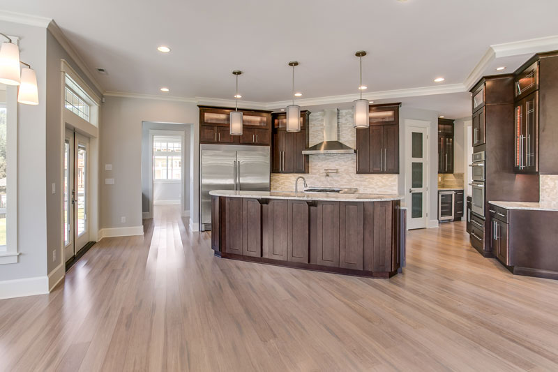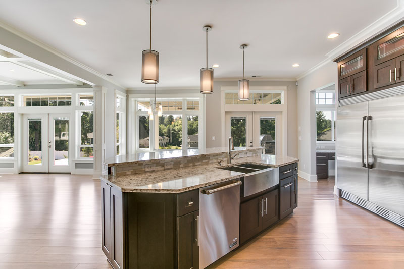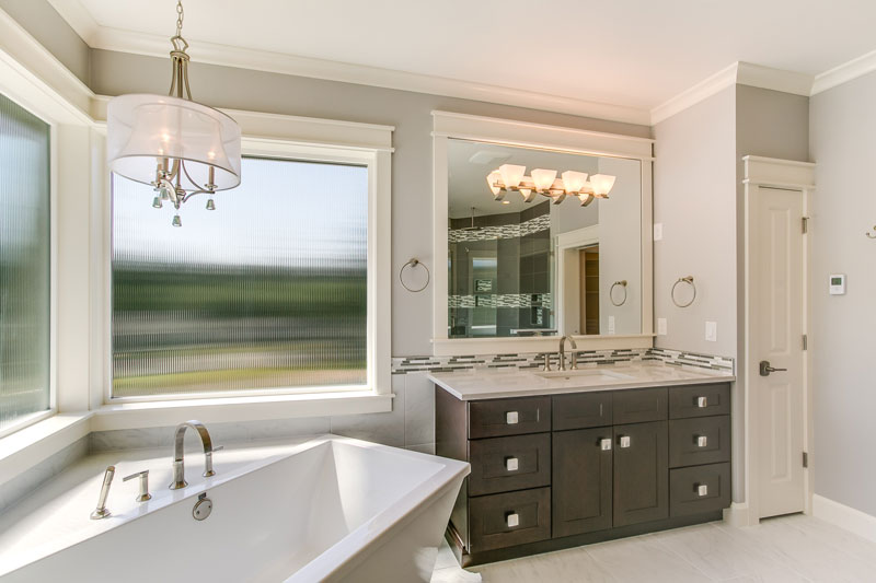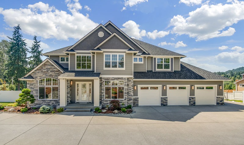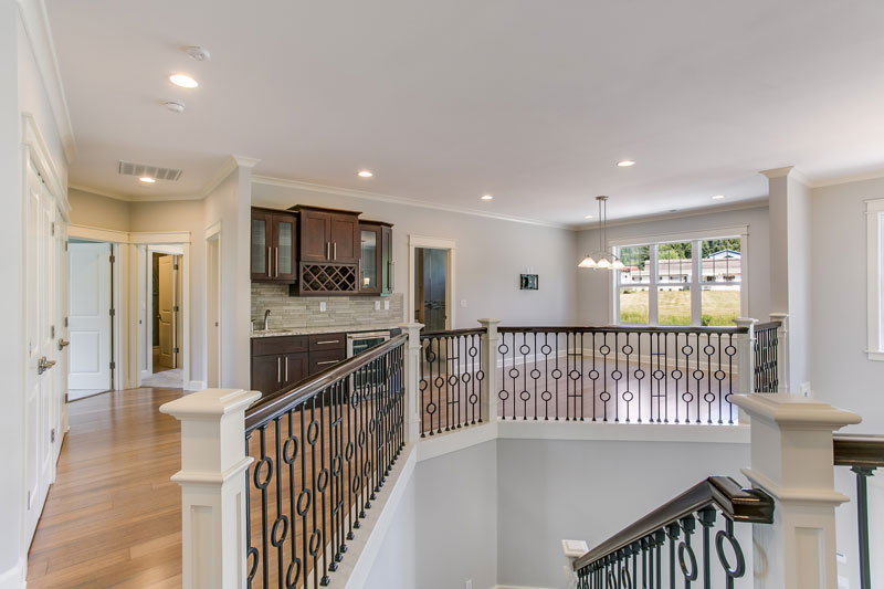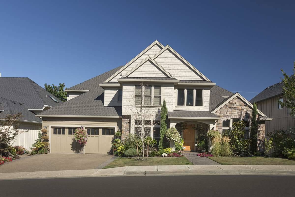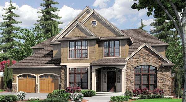 This homes pleasant surprises dont stop at its appealing exterior, where traditional architectural lines play host to an assortment of natural materials, including shake shingles, wood garage doors, and ledgestone accents. The beautiful gabled roofline fronts an upper-level floor plan with the potential for five bedrooms, making this home ideal for a family. Among the upper-level spaces is a large bonus room with corner windows and a spacious master suite with a sitting area, a roomy corner shower, a double sink and a walk-in closet with compartments for two persons.