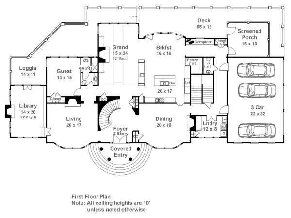 Typically you'd only find a classic family estate like this in the United Kingdom or Europe, but you can live this lifestyle everyday. Although this grand home has all the timeless elements of truly tasteful design, this rendition is thoroughly modern and replete with every convenience and luxury. The floor plan is spacious and flexible enough for formal dinners and raucous Superbowl parties. Note the guest suite on the first floor near the library (a loggia access enhances the beamed-ceiling library). The family room is cavernous but close enough to the breakfast room and kitchen to make it practical. The grand staircase separates the master suite on the second floor from secondary bedrooms. Many extras, like the screened porch or the cedar closet, make this a home to treasure.