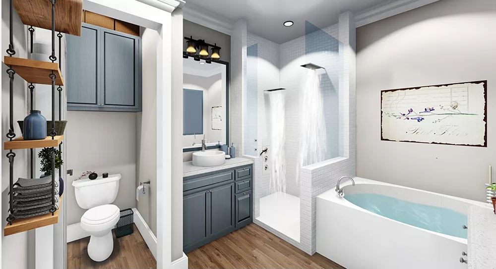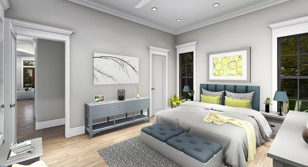 bedroom floor plan provides a private master bedroom located on the rear of the home and