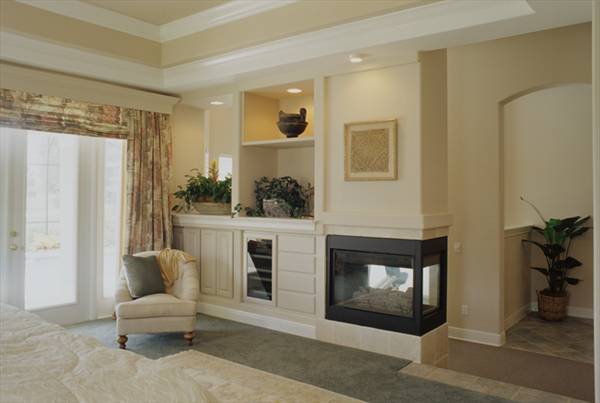 The master bedroom suite in this design is one of my favorites. It includes not only a peninsula fireplace, but a sitting area, a library, his and hers walk-in closets, and a private covered patio. Four additional bedrooms, 3 baths, an expansive laundry room, formal living areas, and a outstanding family-kitchen-nook area round out this home.