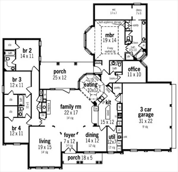 The typical ceiling height in this exciting Tuscan styled home is 9' but most ceilings are far from typical. The Living room, foyer and family room have 14' ceilings while the kitchen, dining and utility room have 12' ceilings. The eating area has twin built-in china cabinets and an unusual shaped 14' tray ceiling The master bed room also has 13' tray ceilings. Notice the book shelves located near the office and in the master suite. The master bath has a dressing vanity with mirror surround and cabinets to house hair dryers and other bath appliances. The giant mbr walk-in closet has a dressing area with natural light provided by a stained glass window.