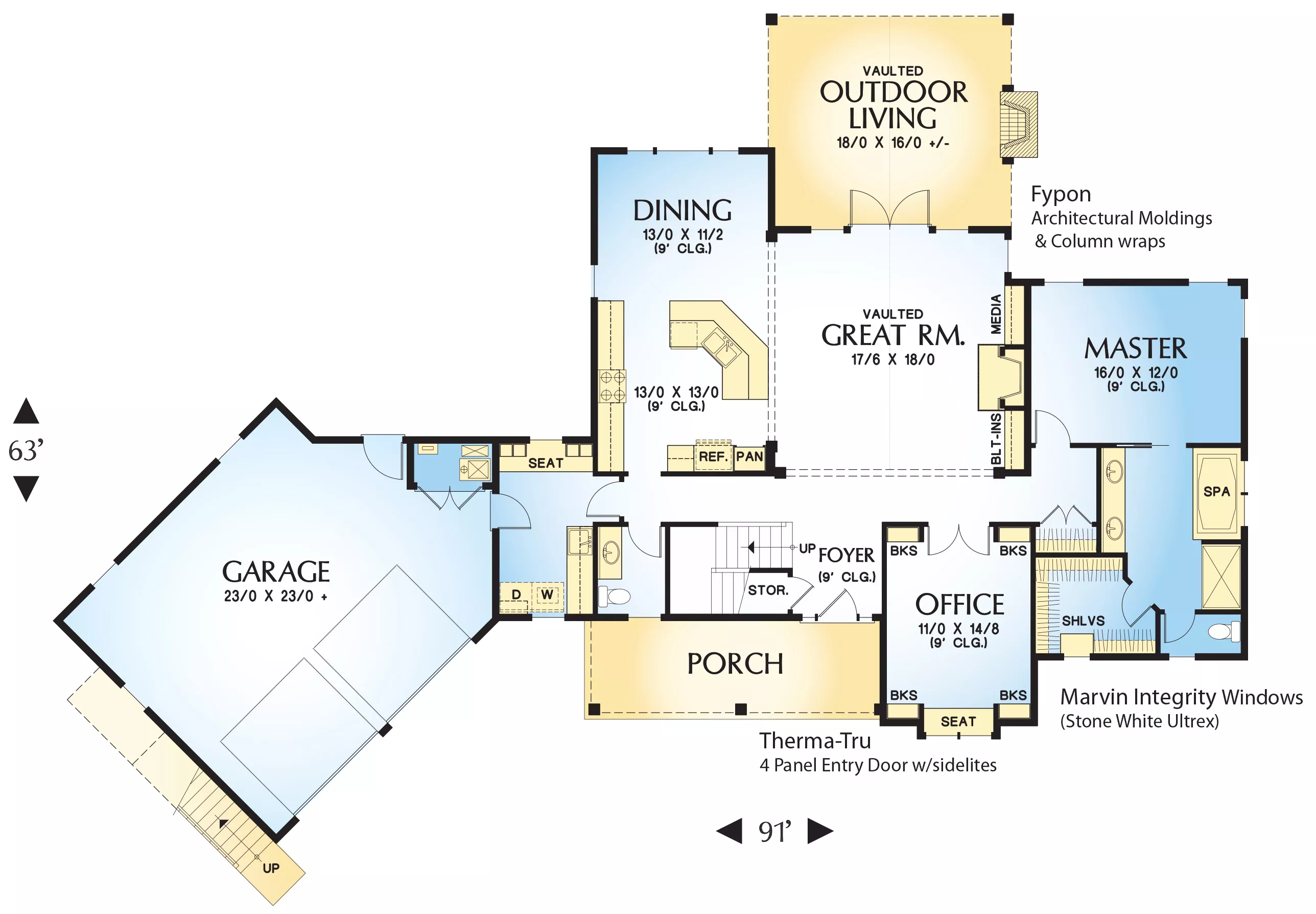 An open foyer leads past an inviting staircase to a large, open plan layout of great room, dining and kitchen areas. For those working from home, the office is conveniently close by - for those looking for fun, attractive outdoor spaces at front and rear connect homeowners to nature while protecting them from the elements.