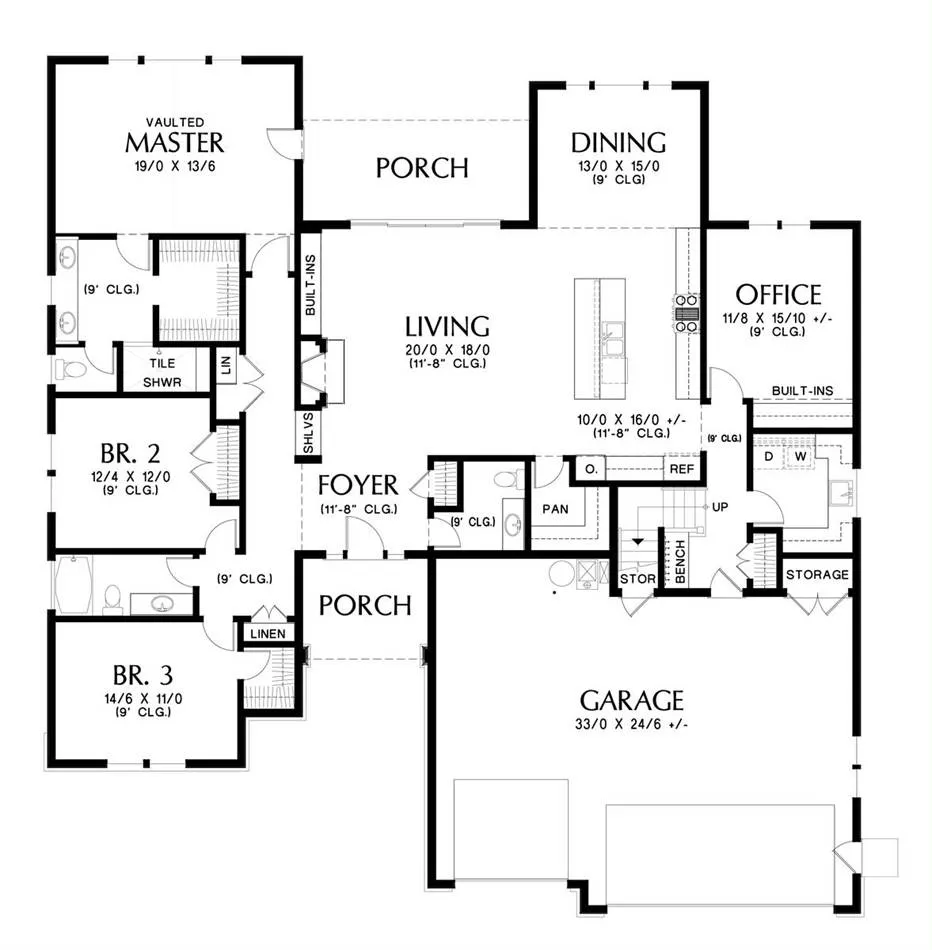 A sensible and attractive option, this craftsman style house plan has the appeal of the subtle finishes and designs that one would expect, with a special elegance about it. With 2,481 square feet, this 3 bed, 3.5 bath plan provides precise and dedicated spaces that make coming home a treat. A 3 car garage and covered porch adorn the front of the house, while opening to a mudroom and foyer respectively. A back office provides privacy from noise and distractions. The left wing of the house has 3 bedrooms, including the master suite and its over-sized walk-in shower and his and hers sinks. The large living room has built-ins as well as a media center, perfect for family movie night, while the kitchen has a large entertainer’s island and dining space. The upper floor provides you with a massive game room and wet bar, sure to be the envy of your friends, while the open loft area has a computer station, ready for completing homework or projects with the kids.
