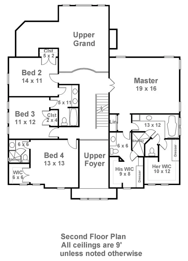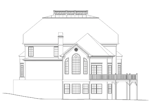 The impressive facade of this stately design features a columned portico topped by a large fanlight. Inside, the layout is economic and functional: living room and formal dining room at left and library at right. At the rear, a corner breakfast nook takes advantage of natural light throughout the day, as does the two-story family room. Upstairs, His-and-Hers baths and closets steal the show.
