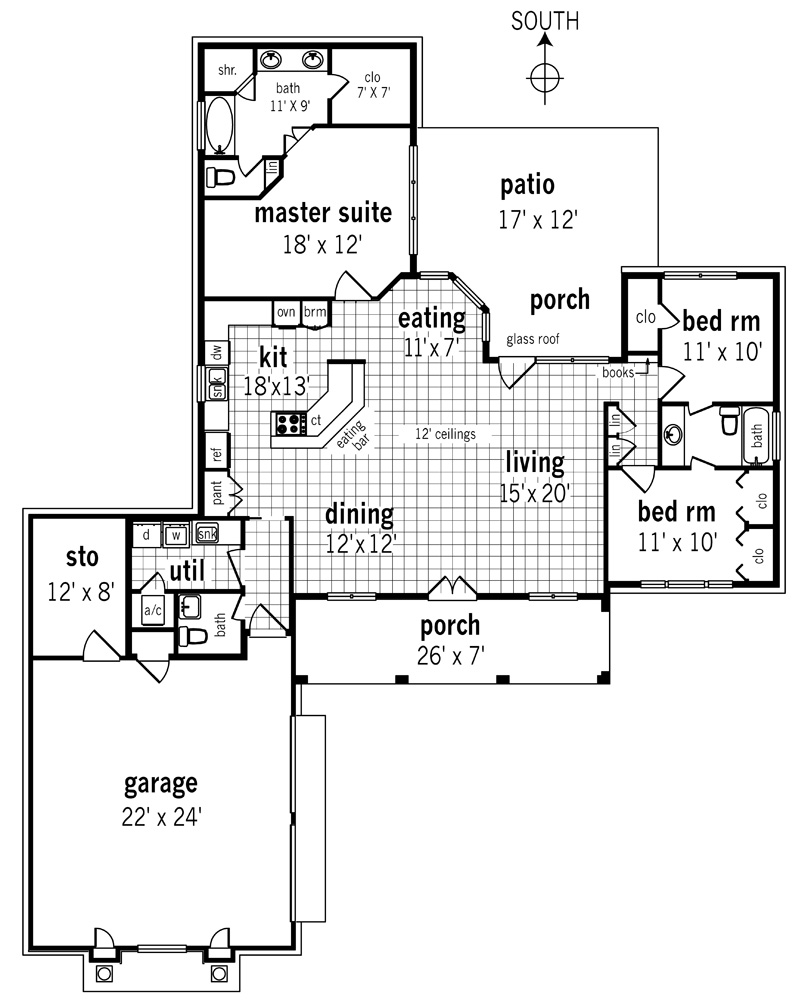 A large front porch welcomes your guest to enter into the open and expansive interior that features 12 ceilings in the living, dining and kitchen area. The kitchen is superbly designed and features a large floor-to-ceiling pantry and an island with an eating bar. Just steps away, the utility room and half bath create real convenience for the homemaker. The master suite is designed to provide a sitting area or TV viewing area. The master bath is practical but luxurious offering a spa tub, separate shower, private toilet with linen storage, and a spacious walk-in closet. The two secondary bedrooms have a Jack and Jill bath and abundant closet space. Dual linen closets and built-in bookshelves are neatly tucked into the hallway. Due to the open design and minimum wasted space, this home is surprisingly small but with big amenities and looks.