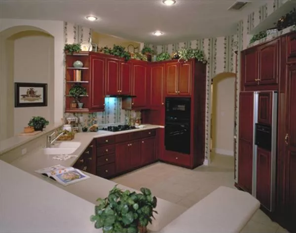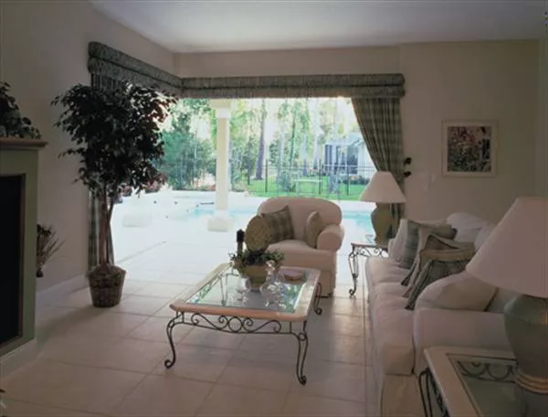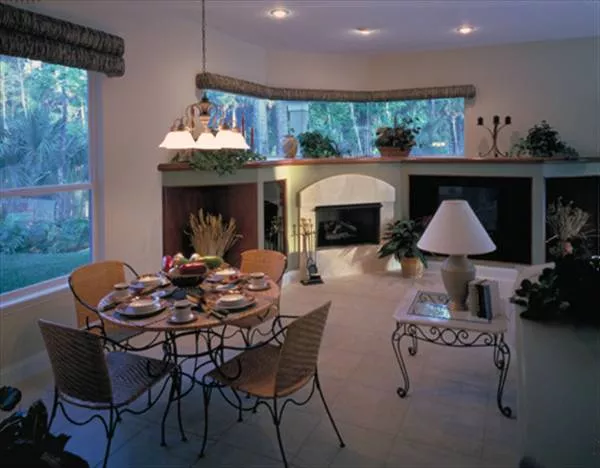The kitchen, nook and family room share a spectacular with summer kitchen through a corner less wall, made possible by the separation of both sliding glass doors.