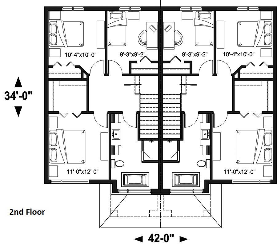Charny Starter Modern Style Duplex House, Plan 6264