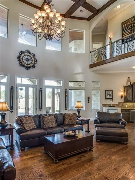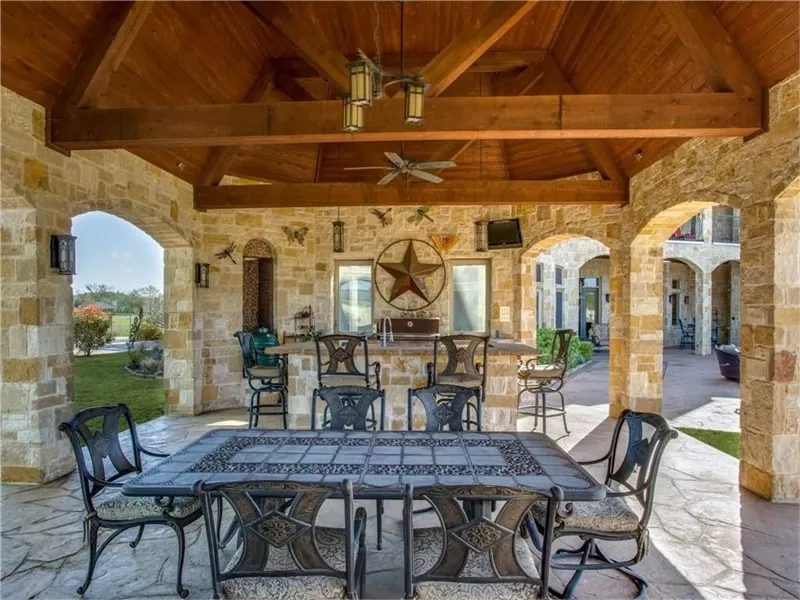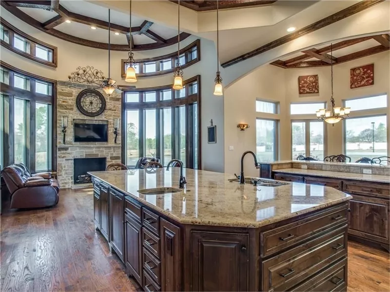LIFE IN A STORYBOOK CASTLE is perfect for family and entertaining. This palatial home provides a wealth of classic flourishes and modern comforts; the two-story grand room welcomes guests with its grandeur; the round master suite is located on the main floor for privacy. A 1200 sq ft bonus apartment is available above the garage. The amenities of this home make it a treasure indeed!