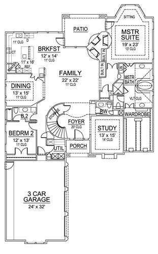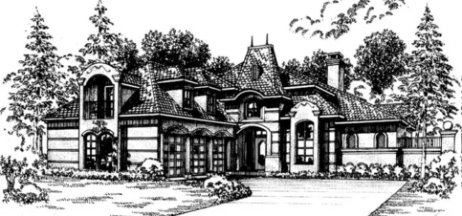This luxury chateau home plan is a lovely abode for your family. The two-story foyer is flanked by a curved staircase and a large study. The foyer opens into the family room, breakfast area and kitchen. A free-standing island/breakfast bar is the only separation between these rooms. Enjoy the warming fireplaces in the family room, patio and master suite. The master suite offers a sitting area, a tray ceiling and a lavish vaulted bath with luxury tub and his and hers vanities. The large wardrobe will please any fashionista. Upstairs, two family bedrooms with walk-in closets share a Jack and Jill bathroom. A third bedroom has a walk-in closet and direct access to a full bath. A game room with built-ins includes access to a balcony to enjoy views outside.