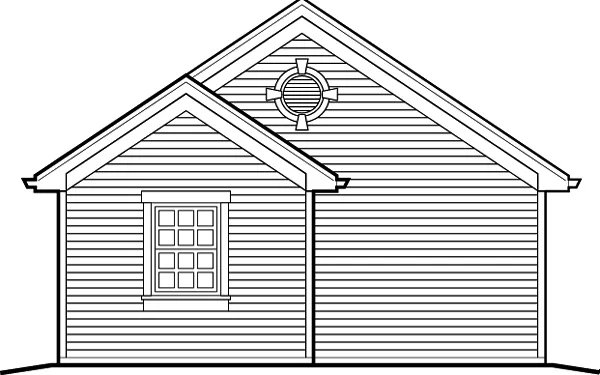 This simple two-car garage is easy to build and adorned with classic details that dress up its exterior: a round louver and twin carriage lamps. One side of the interior is a bit deeper than the other, perfect for storage or perhaps a workshop bench.