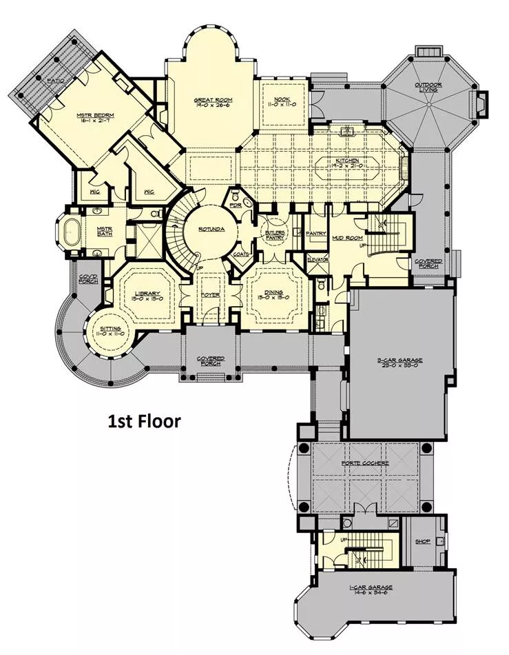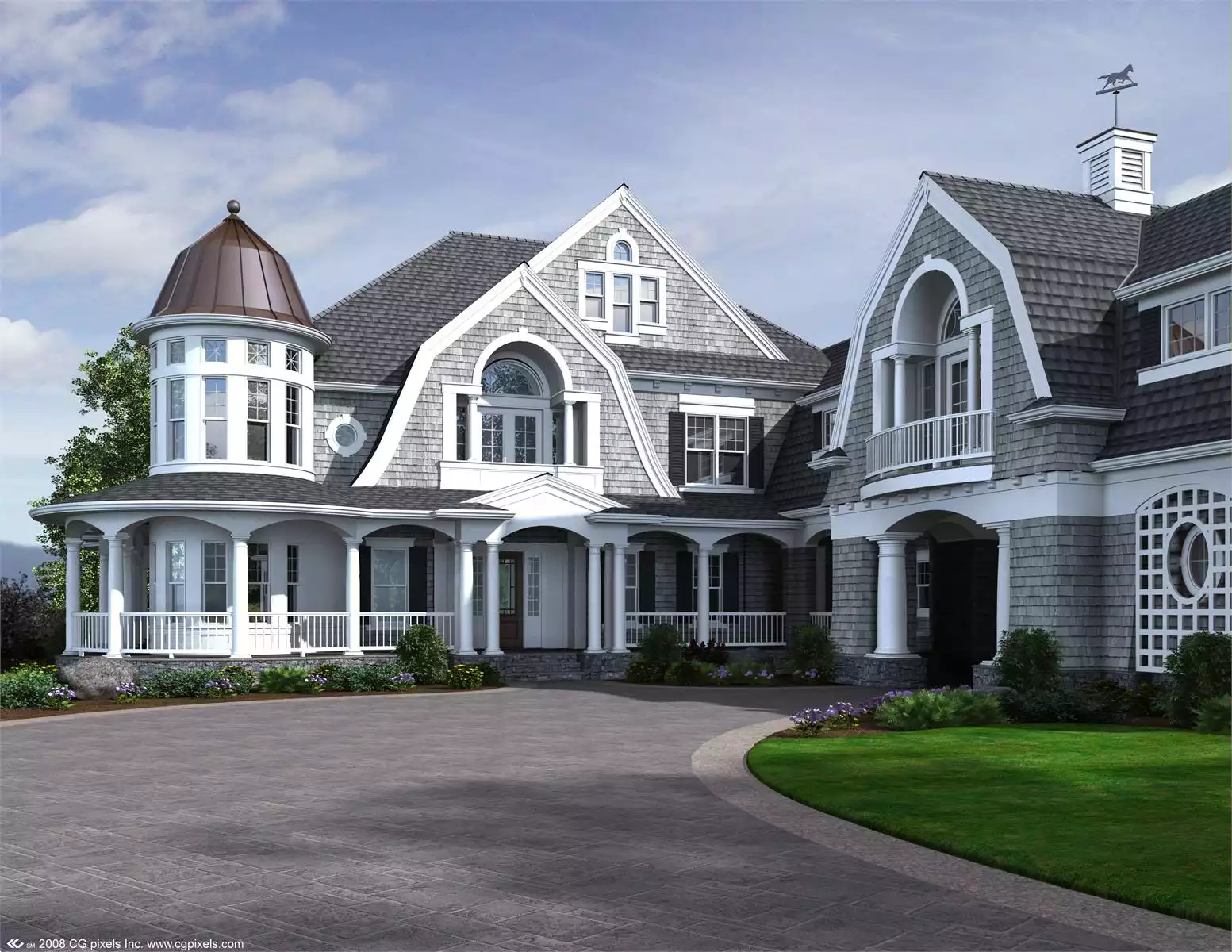 You can picture this amazing five-bedroom house plan near the beaches of Cape Cod. House Plan 3409's graceful porches embrace much of the exterior of this home plan. A quiet library and a formal dining room flank the inviting foyer. The island kitchen is modern and vast. The family chef will appreciate the sizable pantry as well as the butler's pantry. The spacious great room offers a dramatic high ceiling and plenty of backyard views. Double doors introduce the opulent master suite, complete with a fireplace and a garden tub. Four more bedroom suites are found upstairs, along with a theatre and a game room.