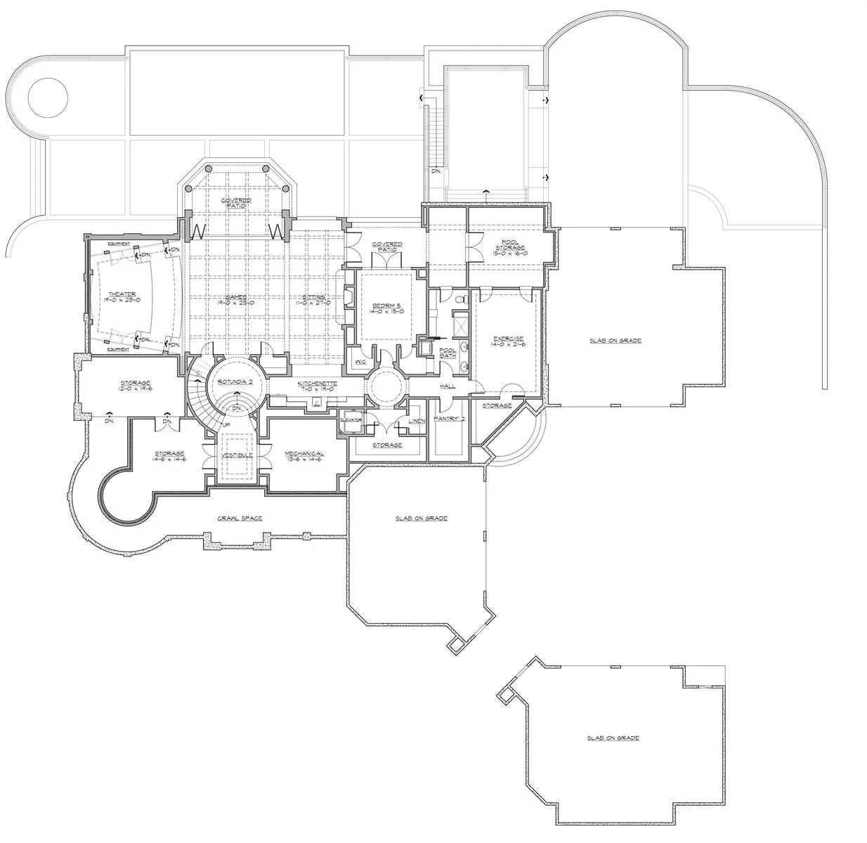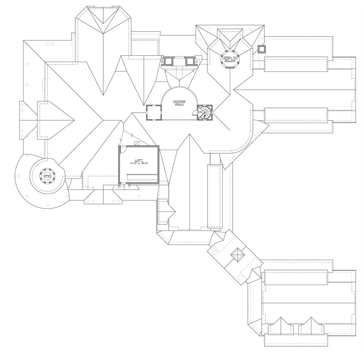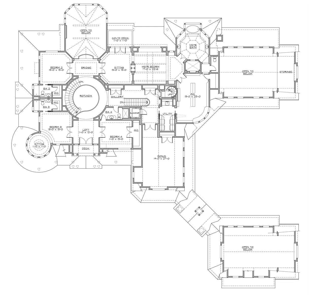 Quaint rooflines and shuttered windows adorn this luxury cottage-style house plan, with six bedrooms, five full baths, three half-baths and 11,000 square feet. Warmed by a fireplace, the living room in this home plan flows into a circular music room. Relax with friends in the sizable family room, brightened by windows and enhanced by a fireplace. The vast island kitchen flaunts a nearby pantry. Stage formal meals in the butler's pantry, before serving them in the dining room. Eat casual meals in the bright nook, or step outside to feel cool breezes. One floor up, you'll love the peaceful master bedroom, along with its sitting room and two-sided fireplace. In the opulent bath, you'll find a garden tub, a separate shower and two vanities. Additional large bedrooms and private baths are nearby. The oversized bonus room in this home design would be great for hobbies. Our customers love the main-floor areas for studying and crafts.