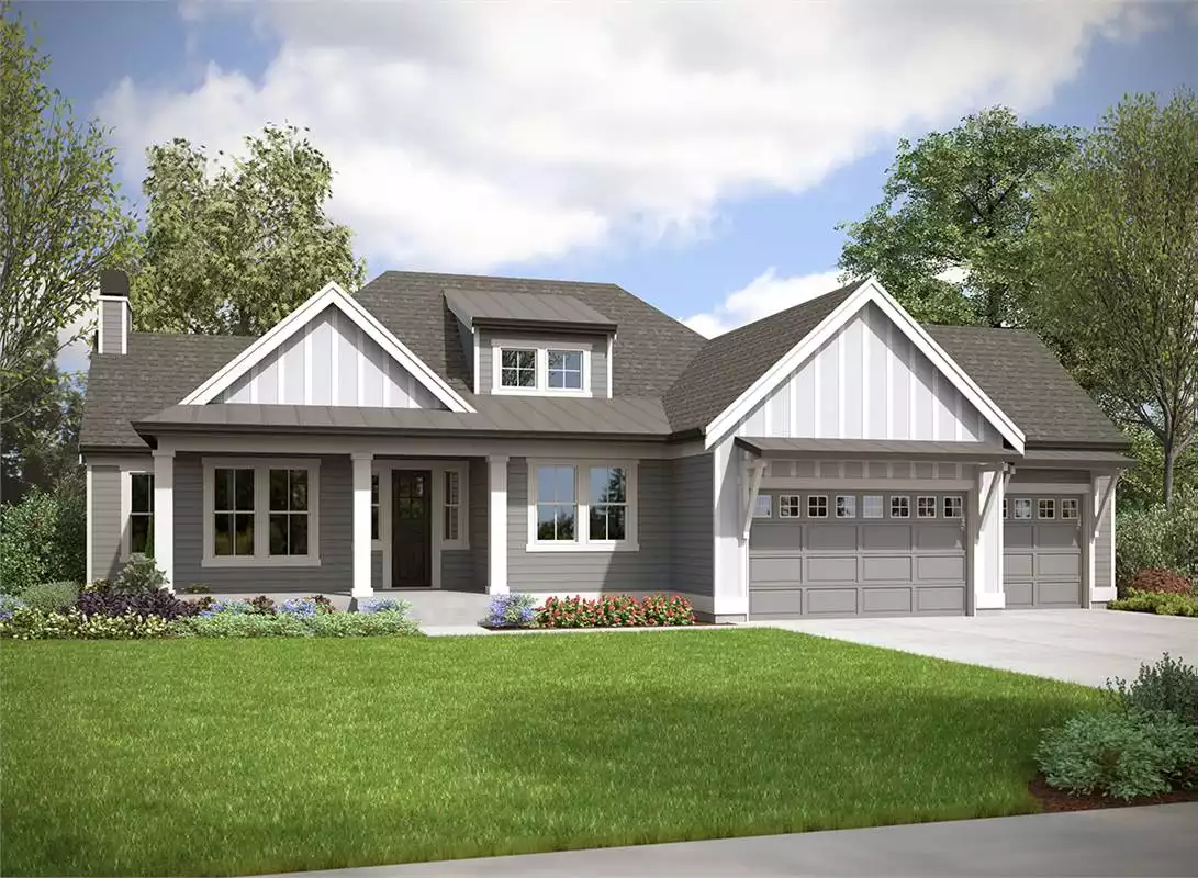 Clancy Grove is a spacious new cottage home plan with 2,354 square feet of living space that features 3 bedrooms and 2 bathrooms. The large great room has plenty of room for entertaining guests or spending time with family and friends wrapped in front of the built-in fireplace, while the open layout makes the kitchen, dining, and living spaces feel connected and encourages family time! The 3 car garage gives you plenty of room for your vehicle and plenty of extra storage space for all of your belongings. Relax in your large master bedroom located at the end of the hall, which features a private bath with a walk-in shower that is sure to make you feel like royalty. Clancy Grove is the perfect combination of beauty and functionality.