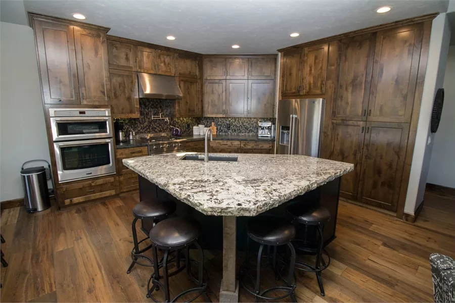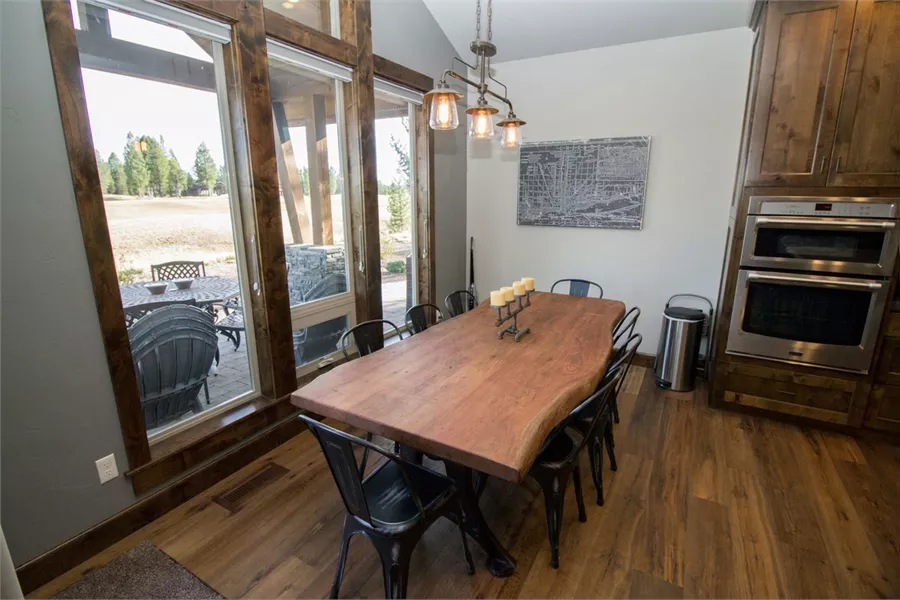 You can dine casually at the raised bar in the kitchen. The sink is set into the bar as well so that prep or cleaning can be done while still engaging in social or household conversation.