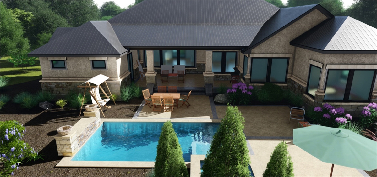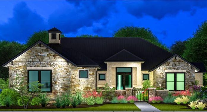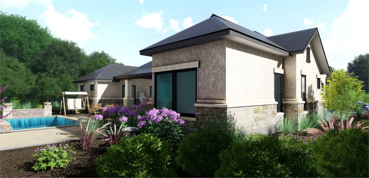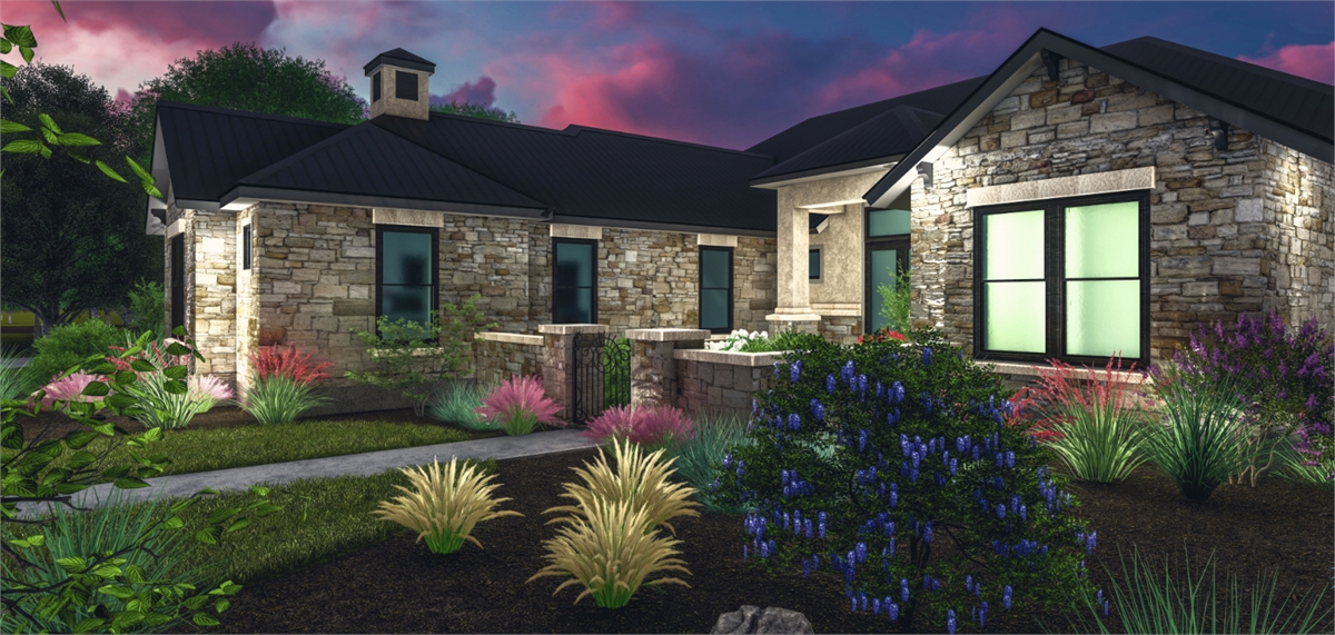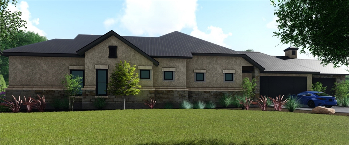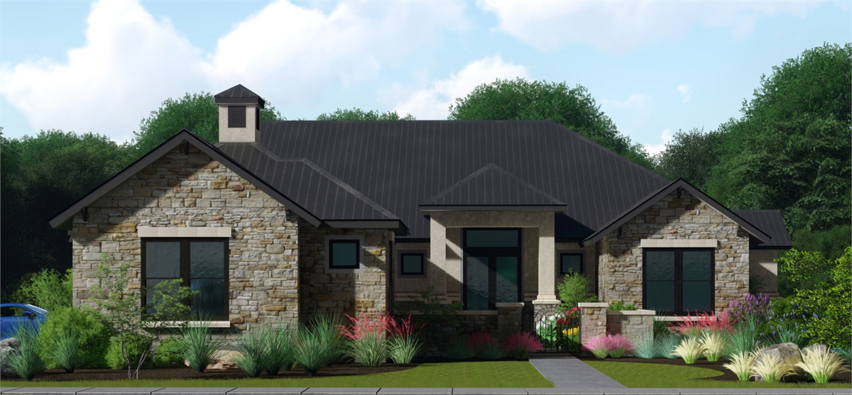 This traditional one-story house plan with three bedrooms and four baths offers plenty of curb appeal in its 3,181 square feet of living area. You'll want to invite friends over to your home plan, to see your fantastic great room with a corner fireplace. The island kitchen includes a nearby pantry and wine bar. The casual dining room is perfect for any meal. Relax in the peaceful master suite, where the private bath showcases a sit-down shower and dual vanities. Walk-in closets and personal baths are fabulous features in the secondary bedrooms of this home design. Builders point out the front courtyard and rear porch, as well as the exercise room, game room and cozy office.