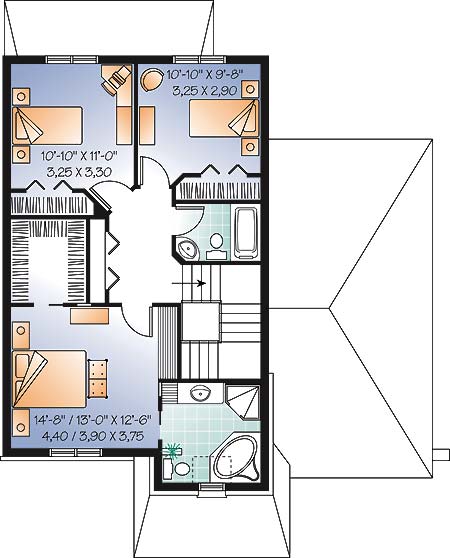 Striking stone gives this three-bedroom house plan a style that is reminiscent of a castle. Inside, the lovely living room is perfect for any gathering. The formal dining room is large enough for special occasions. The island kitchen offers sliding glass doors to a cozy rear porch. The sunny breakfast nook is a great place for morning coffee as you read the newspaper. A powder room is found just a few steps down from this level. On the upper floor, a built-in cabinet and a walk-in closet keep the master suite organized. The deluxe bath is a relaxing haven after a long day. A hall bath serves the remaining two bedrooms.
