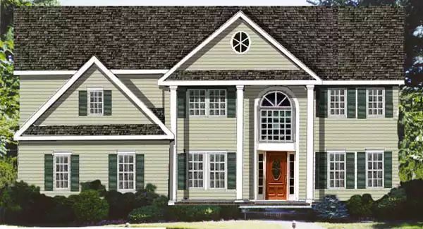 Traditional columns sitting on low wood panel knee walls frame the two story Great Room. A fireplace framed with glass overlooks the rear yard. The kitchen includes a walk-in-pantry, double wall oven, large eating island. The Master with a 13'-6" cathedral ceiling, includes seating area plus oversized bath and Walk-in-closet.