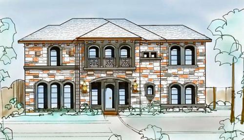 This Tuscan-inspired luxury house plan is very spacious. Striking stone and arched windows grace the exterior. The foyer is open and flanked by the quiet study with a view of the (concept) pool, and the elegant dining room with direct access to the pantry and butlery for ease in serving. The kitchen, breakfast area and family room are separated only by the breakfast bar. A free-standing island offers extra counter space. Built-ins and a fireplace enhance the entire family gathering area. The master suite boasts a large bath with his and hers vanities, large shower and corner garden tub. The sizable wardrobe will thrill any fashionista. Upstairs, a game room with built-ins is flanked by a family bedroom with walk-in closet and full bath on either side, completing this luxury home plan.