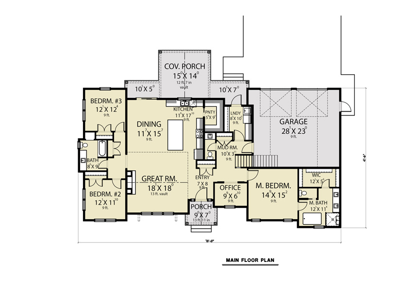 A sleek combination of modern farmhouse stylings with a splash of Craftsman inspiration, this impressive ranch-style home is as unforgettable on the outside as it is amazing on the inside. From the unending curb appeal to the interior layout of 2,564 square feet of open space, there is a constant presence of convenience and comfort found throughout the plan. And with 3 bedrooms and 2.5 bathrooms, this is the perfect option for the new family or those looking to downsize but retain all the features that you know and love. That includes a totally open living room, dining room, and kitchen, a pocket office, and even a rear-entry 2-car garage with storage. And you won’t want to miss the master suite with its private spa bath and walk-in closet!