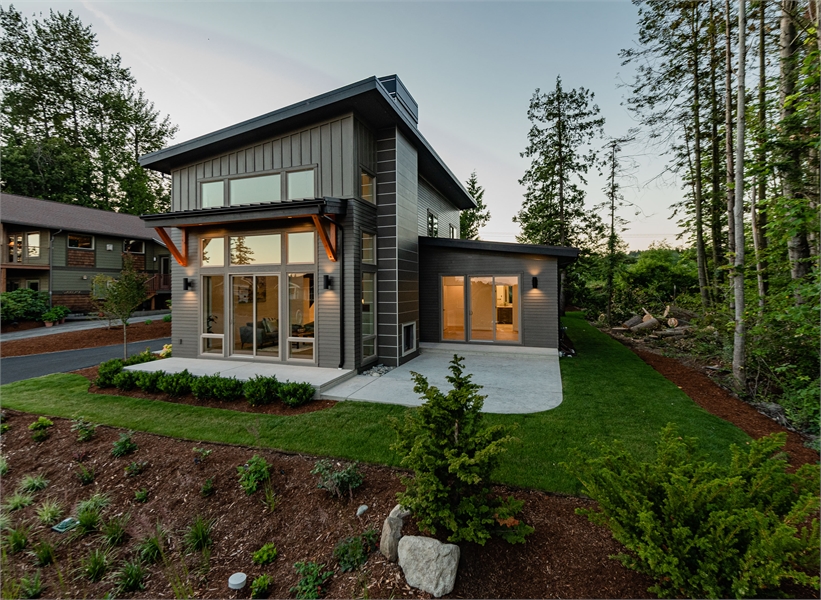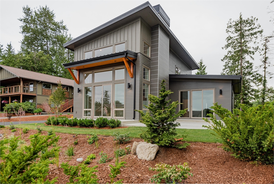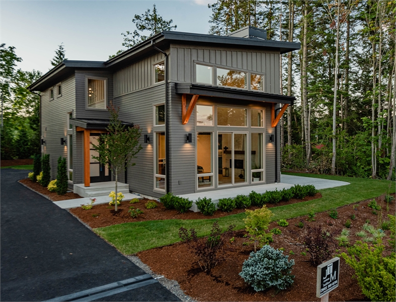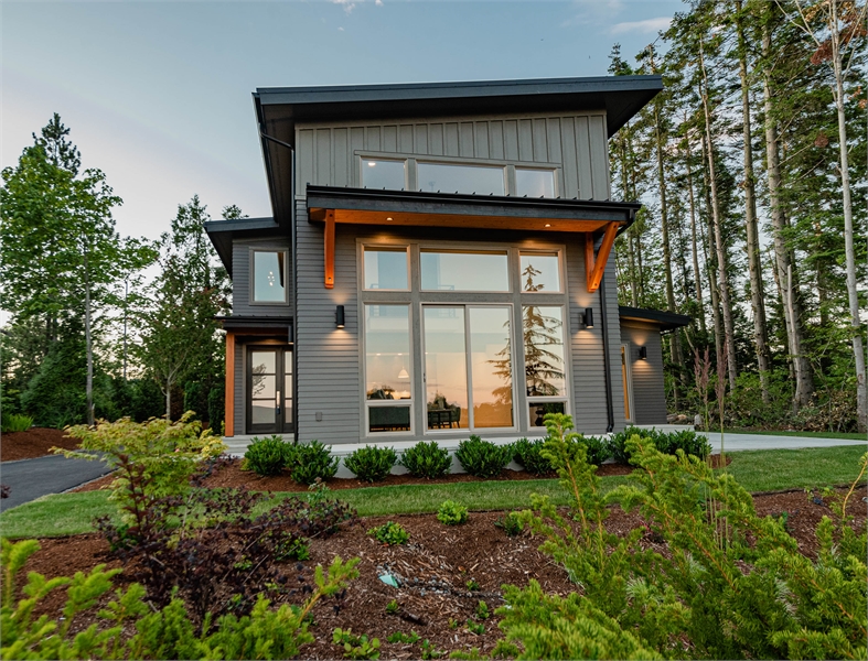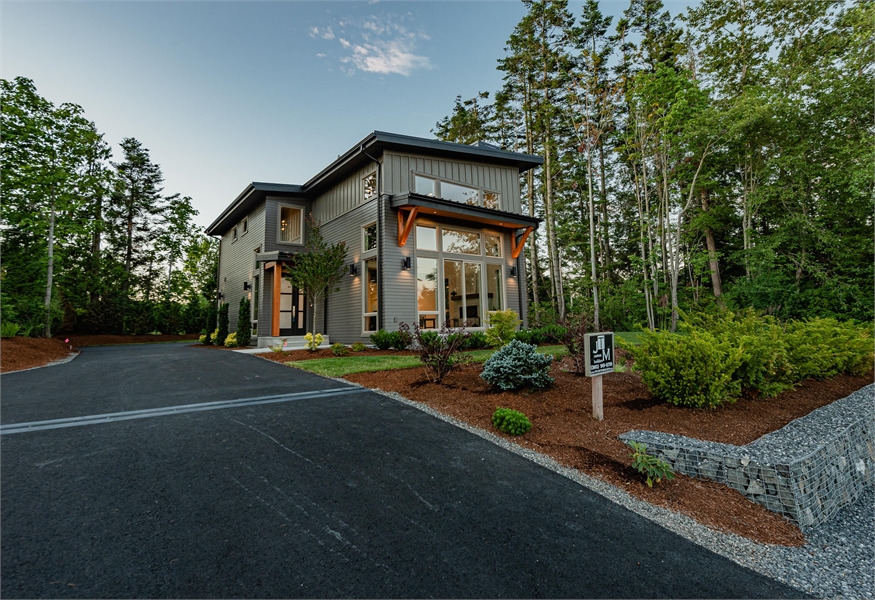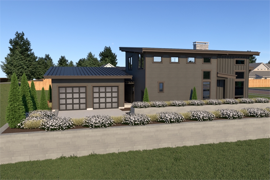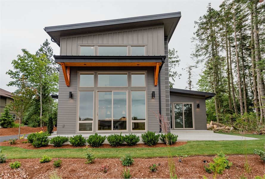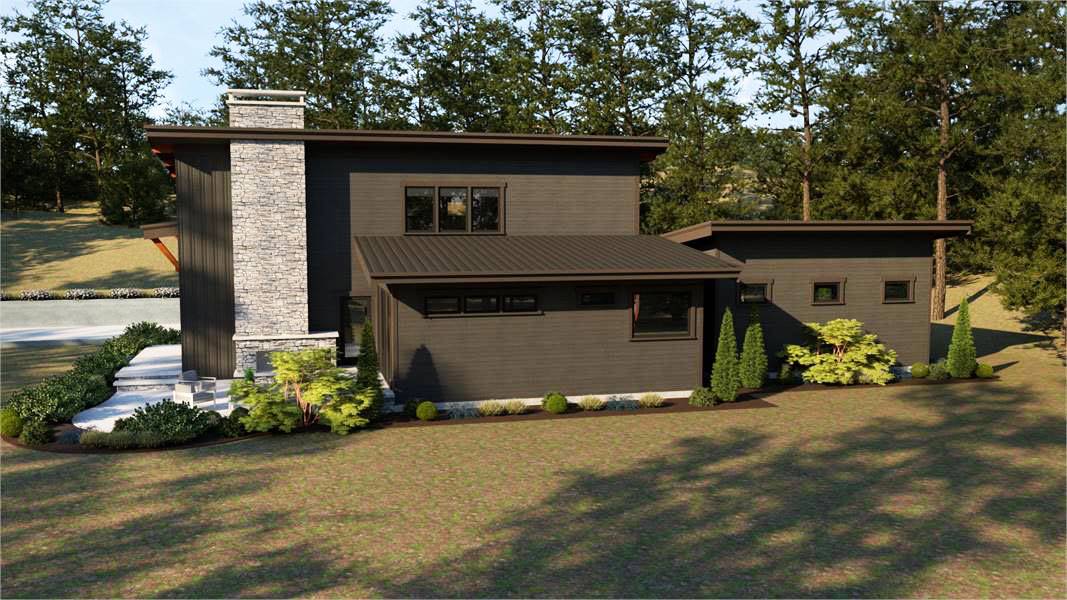 The simplicity and elegance of this modern contemporary style house plan makes it as unique as it is practical. With 2,102 square feet, 3 bedrooms and 2.5 baths, this home has the perfect amount of size for the homeowner who wants a place that makes a statement. Behind the outward facing wall of the home as well as the 2-car garage, is a large gourmet kitchen along with an island and barstool seating. Directly off of the kitchen is a large master bedroom with vaulted ceilings, completed with a luxurious master bath and large walk-in closet and over-sized shower. The gorgeous views of this home continue as the living room open to a deck and patio area, feeling synonymous with the outdoors. The second floor is home to another bedroom, a bathroom, as well as a loft space which can be used as another bedroom or as a bonus area.