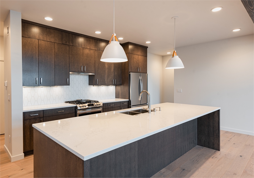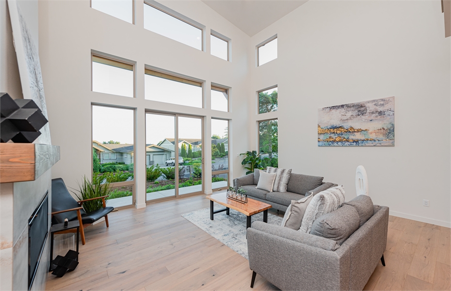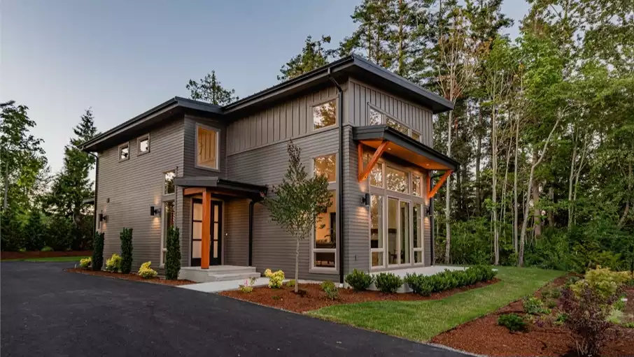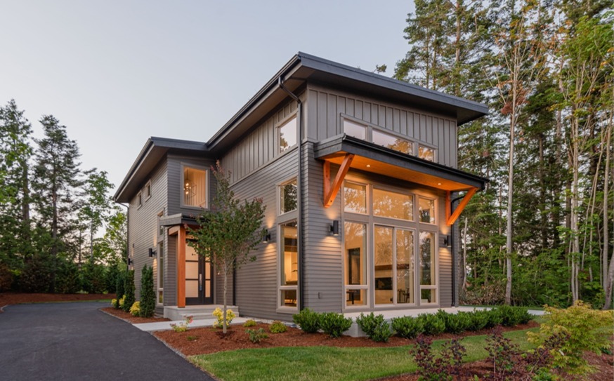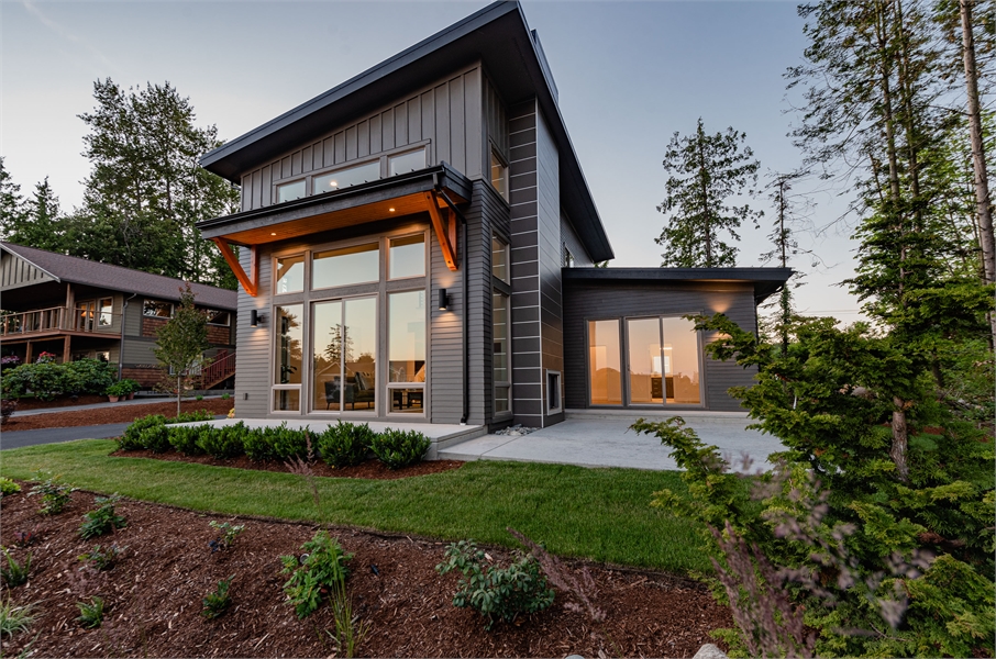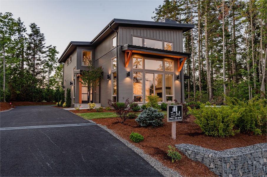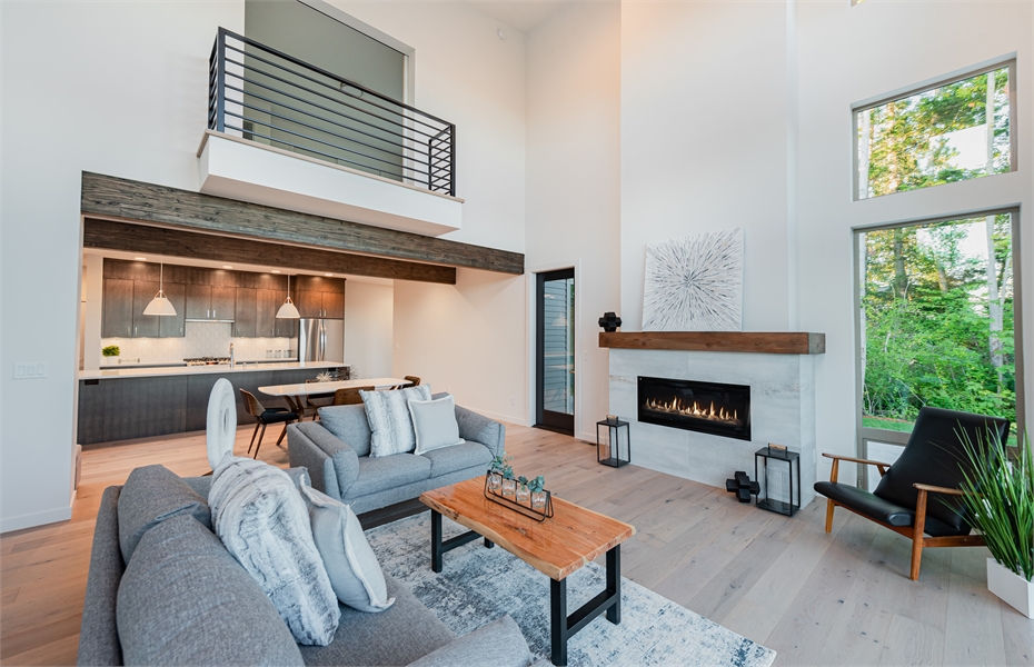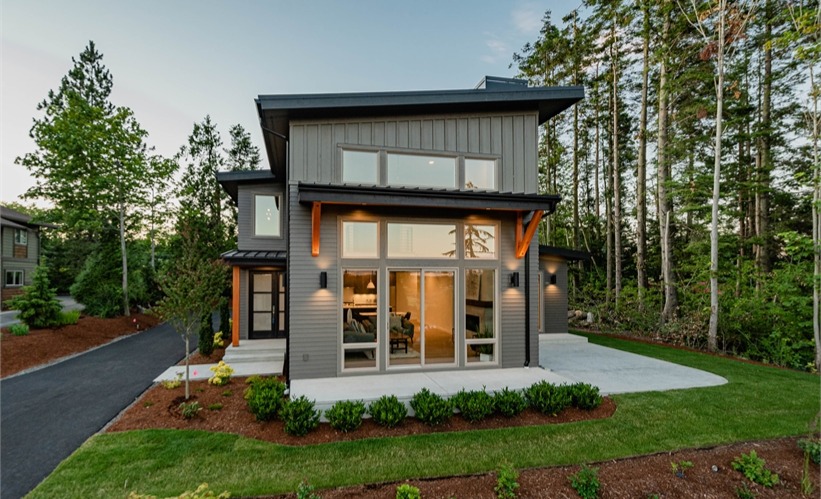 The simplicity and elegance of this modern contemporary style house plan makes it as unique as it is practical. With 2,102 square feet, 3 bedrooms and 2.5 baths, this home has the perfect amount of size for the homeowner who wants a place that makes a statement. Behind the outward facing wall of the home as well as the 2-car garage, is a large gourmet kitchen along with an island and barstool seating. Directly off of the kitchen is a large master bedroom with vaulted ceilings, completed with a luxurious master bath and large walk-in closet and over-sized shower. The gorgeous views of this home continue as the living room open to a deck and patio area, feeling synonymous with the outdoors. The second floor is home to another bedroom, a bathroom, as well as a loft space which can be used as another bedroom or as a bonus area.