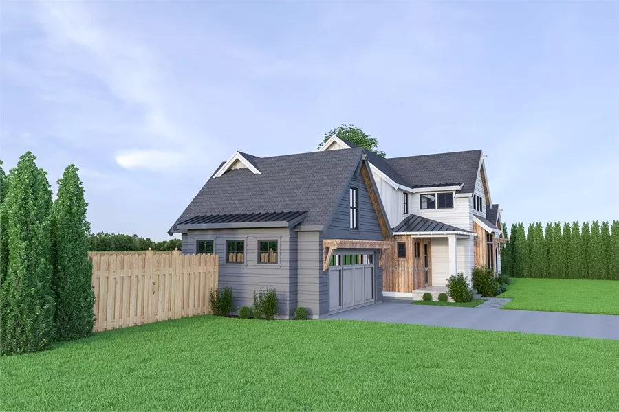 Sleek and stylish with a bit of old time charm, this 2-story farm house style plan is both unique and highly functional. Featuring 1,974 square feet of living space, which includes things such as 3 bedrooms and 2.5 bathrooms, this home is a fresh new twist on one of our most popular styles. Park your car in one of the spaces within the large 2-car garage, and head inside to explore all that this fabulous home has to offer. A covered breezeway shields the detached garage from the elements and provides entry in to the first floor laundry and mud room, while a short walkway leads to the covered front porch and entryway. A nearby powder room is easy and convenient for guests, while the entryway then spills in to the wonderful open concept living spaces which includes the massive great room and its fireplace, the dining room, and finally the large gourmet kitchen. A covered patio off of the dining room makes for great outdoor living and entertaining. The first floor is highlighted by its fantastic master suite, a place of true relaxation thanks to its vaulted bedroom, spa style bath with dual vanities, and spacious walk-in closet. Upstairs you will be pleased to find two more full bedrooms which share a hallway bath, a great and private place for growing children. A long hallway is warmed by natural light thanks to its ample windows, leading to an expansive bonus room over the garage with its very own sky walk! With over 350 square feet, this room is perfect to add whatever space(s) that you and your family may need to make this home a dream come true.