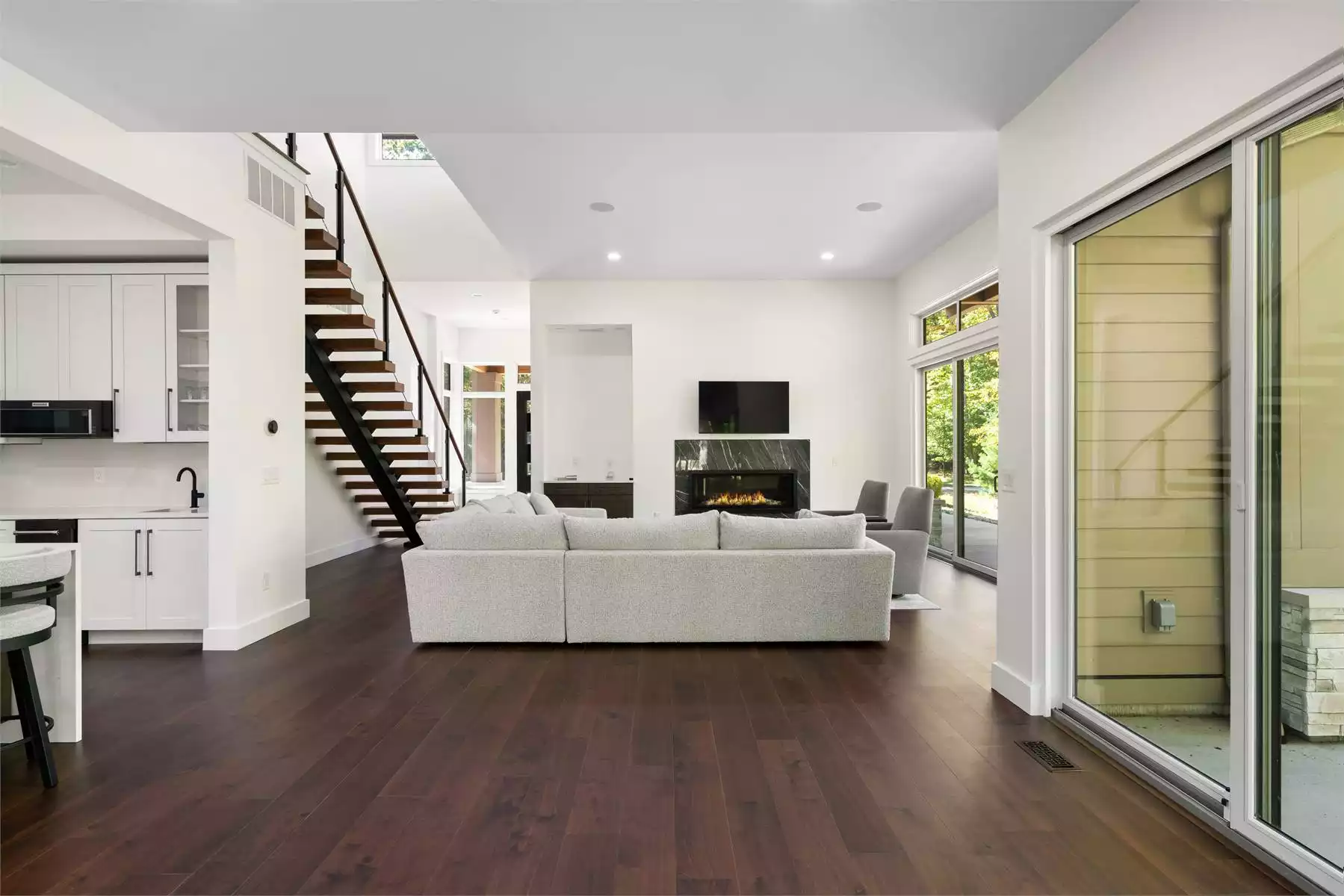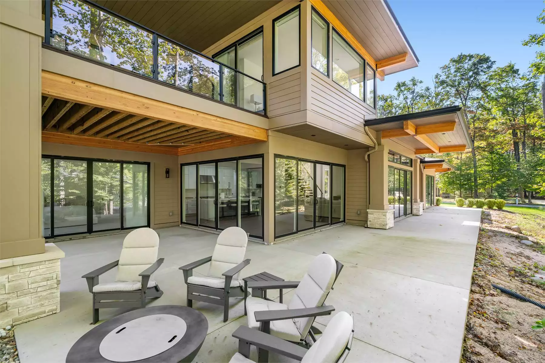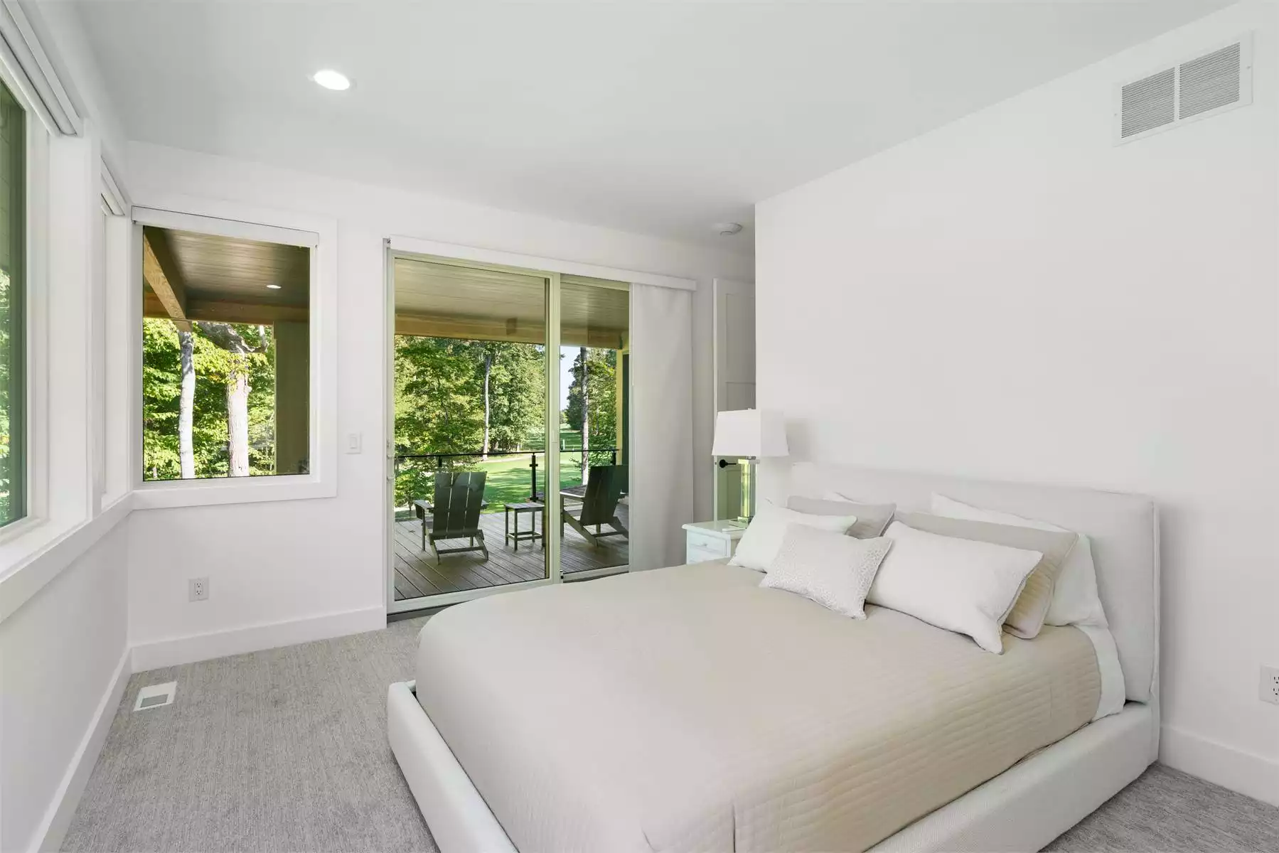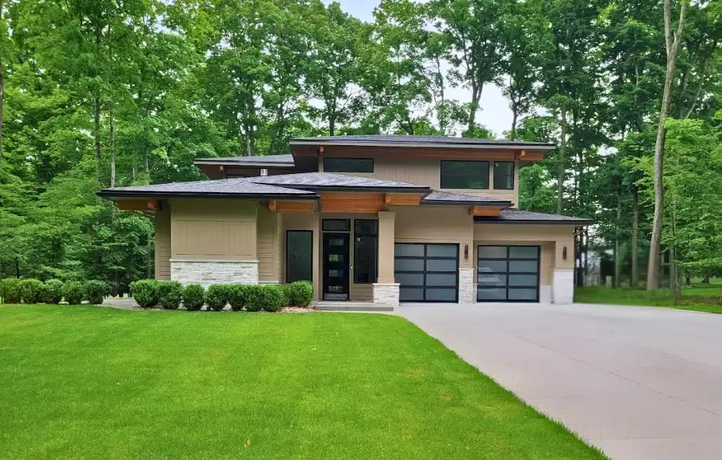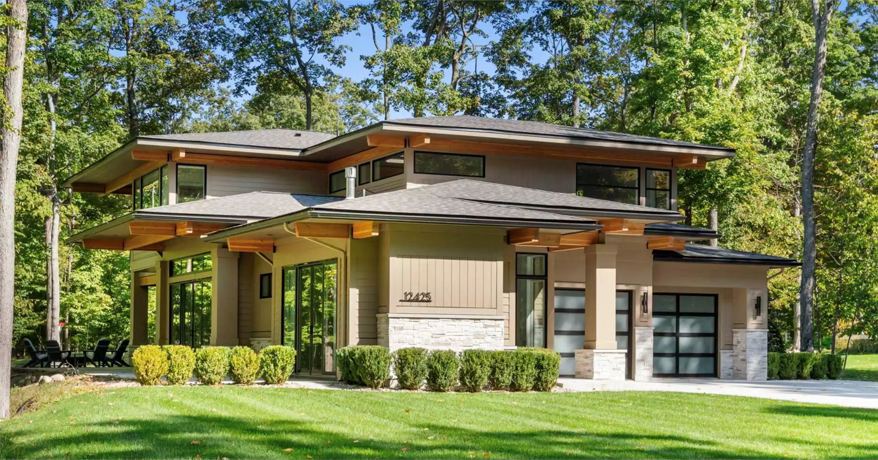 This stunning 3,459 sq. ft. contemporary home offers modern design, open living, and versatile spaces—perfect for today’s families. The striking exterior features clean lines, a mix of wood and stone, and a 3-car tandem garage with extra space for guests or storage. Inside, enjoy an airy open-concept layout with 10' ceilings, a cozy fireplace, and full-height glass walls that slide open to a covered patio and optional pool—ideal for indoor-outdoor living. The main-level primary suite includes private outdoor access, a luxurious en-suite, and a spacious walk-in closet. A flexible front den with an adjacent full bath can serve as a home office or guest room. Upstairs, find 3 additional bedrooms—one with its own full bath—plus a large bonus room and walk-out deck, offering privacy and flexibility for families of all sizes.