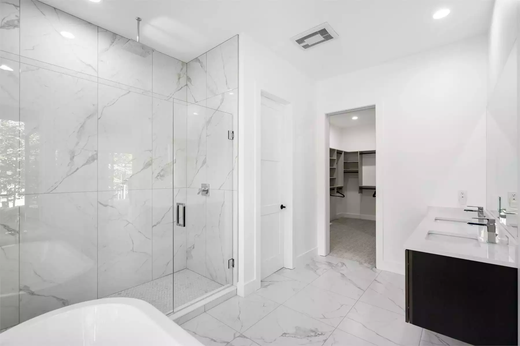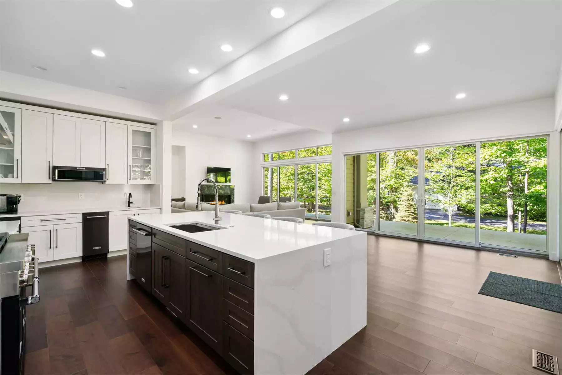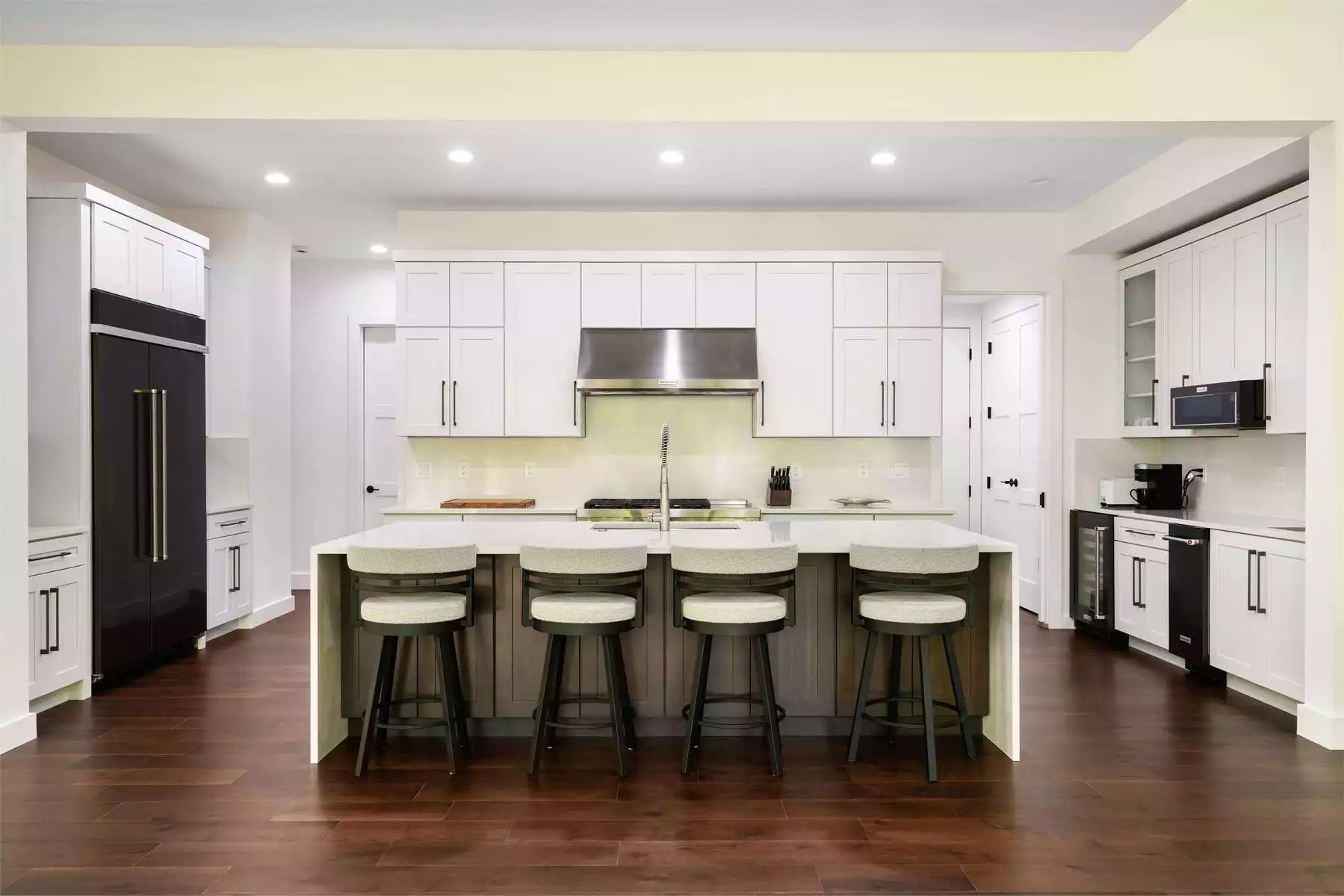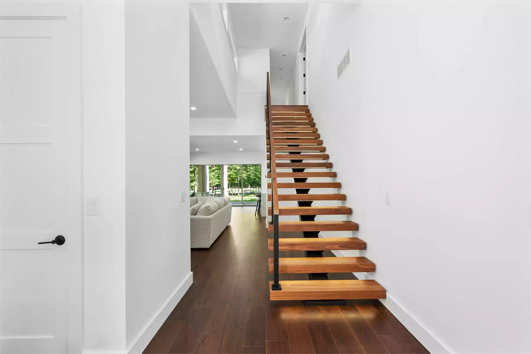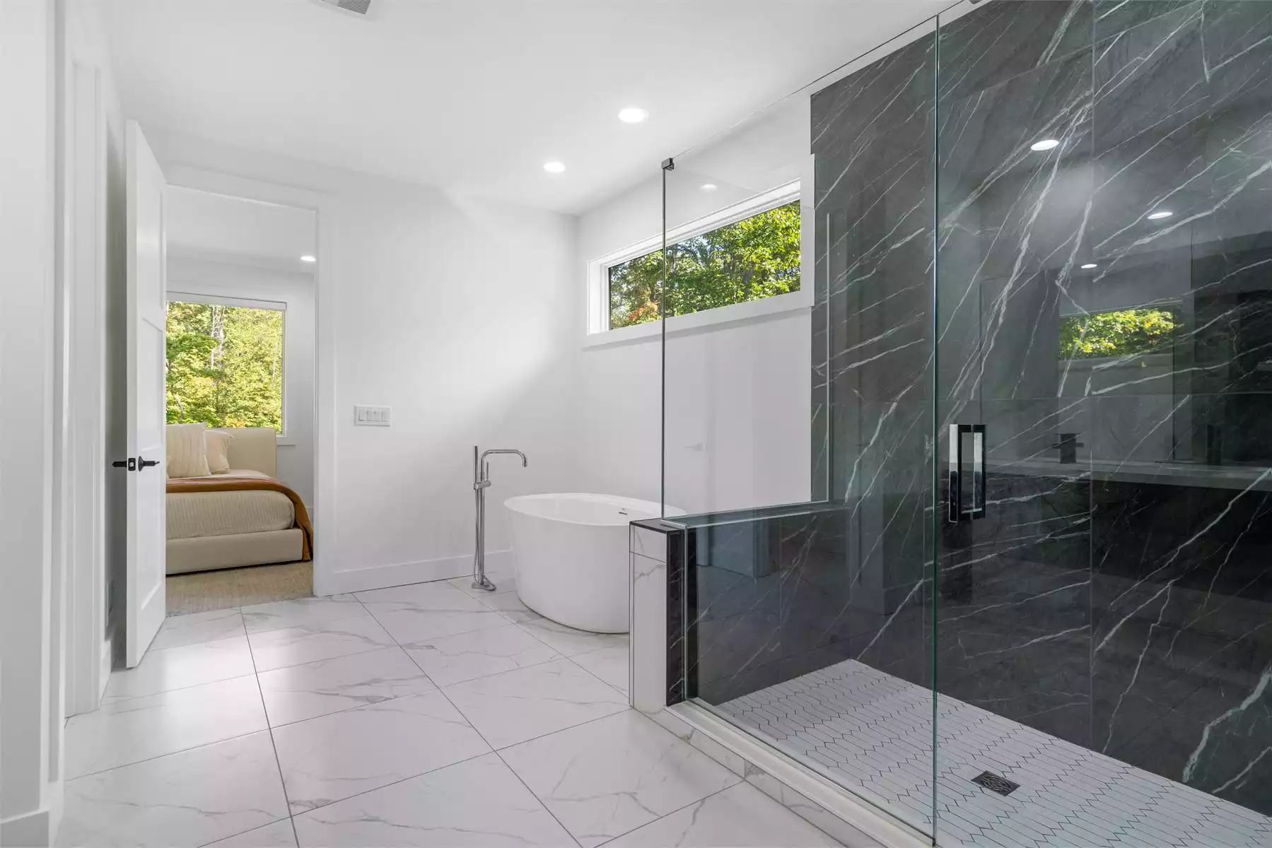 This stunning 3,459 sq. ft. contemporary home offers modern design, open living, and versatile spaces—perfect for today’s families. The striking exterior features clean lines, a mix of wood and stone, and a 3-car tandem garage with extra space for guests or storage. Inside, enjoy an airy open-concept layout with 10' ceilings, a cozy fireplace, and full-height glass walls that slide open to a covered patio and optional pool—ideal for indoor-outdoor living. The main-level primary suite includes private outdoor access, a luxurious en-suite, and a spacious walk-in closet. A flexible front den with an adjacent full bath can serve as a home office or guest room. Upstairs, find 3 additional bedrooms—one with its own full bath—plus a large bonus room and walk-out deck, offering privacy and flexibility for families of all sizes.