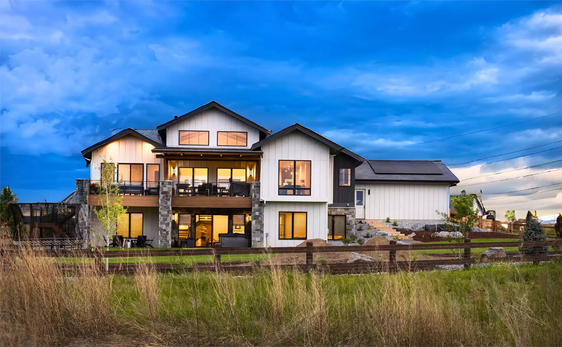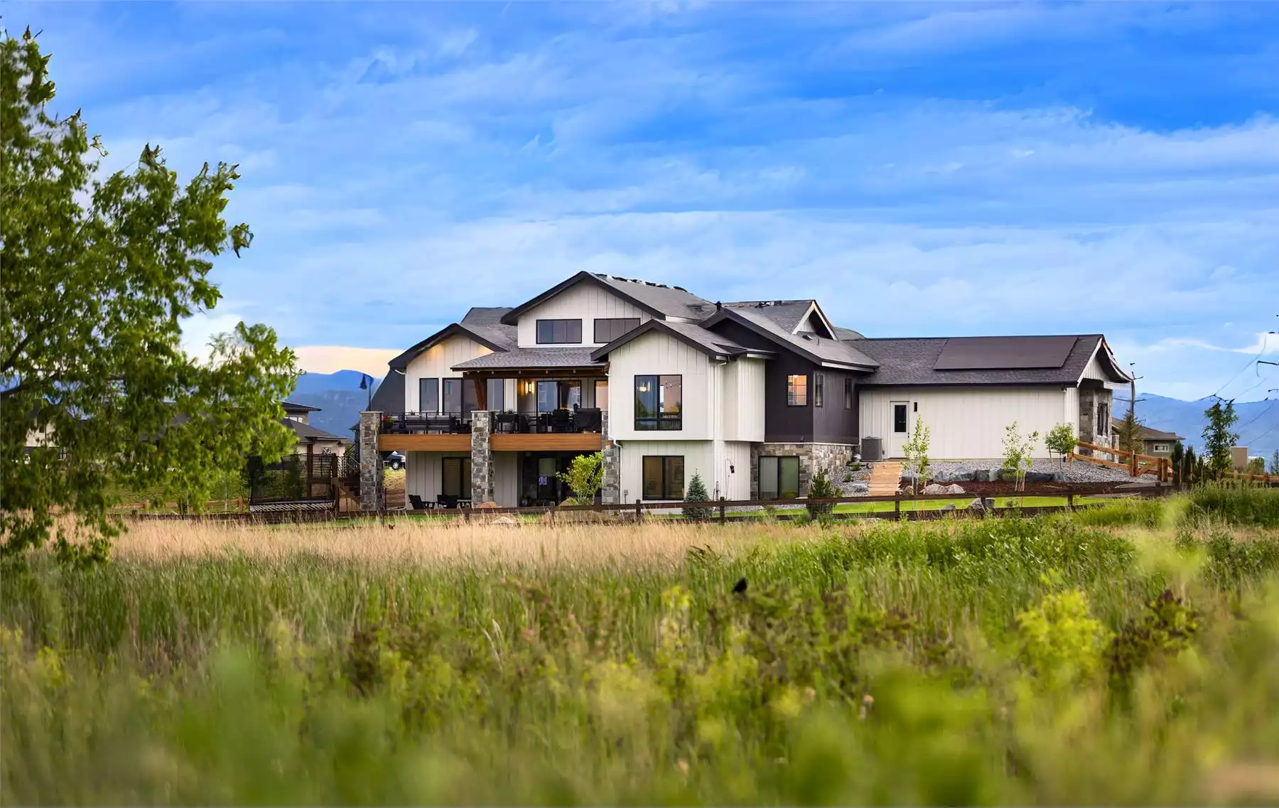 Wellington Heights is a striking contemporary mountain house plan designed to make the most of rear-facing views. This 2,601 square foot main level features a spacious great room, chef-style kitchen with oversized island, and a seamless flow into a covered deck—perfect for entertaining. The primary suite includes private deck access, a luxurious en-suite, and a generous walk-in closet. A guest room sits at the front of the home, offering privacy for visitors. Downstairs, an optional walkout lower level adds nearly 2,000 square feet, with three additional bedrooms, a large rec room, game nook, and covered patio. The exterior combines rustic stone, rich wood tones, and modern black accents for stunning curb appeal. A 3-car garage and ample storage complete this family-friendly layout.