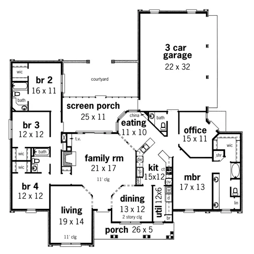Designed for contemporary family needs, this elegant traditional style home has a home office and a guest suite suitable for overnight guest or live-in parents. The living and family rooms have 11 step tray ceilings while the formal dining has a soaring 2-story ceiling with natural light imported from the dormer above. The rear screen porch is accessible from the bedroom wing, family room or garage and it makes a perfect outdoor entertainment are complete with connecting courtyard. Typical ceilings are 9.