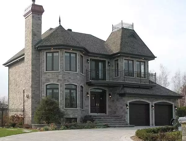 Even though less than 45 feet wide, this European manor style cottage is sure to impress. Two turrets of different volumes are further distinguished by the use of stone, acrylic and wrought iron. Inside, 9-ft. ceilings expand the main-floor rooms. The bayed living room and elegant dining room are perfect for entertaining. The roomy kitchen incorporates a snack bar for three. The casual family room opens to the backyard via French doors. A slightly curved staircase leads to the upper floor. The bayed master bedroom leads to a walk-through closet and a posh bath. Two more bedrooms share a hall bath. A flex room could serve as a 4th bedroom or a quiet study.