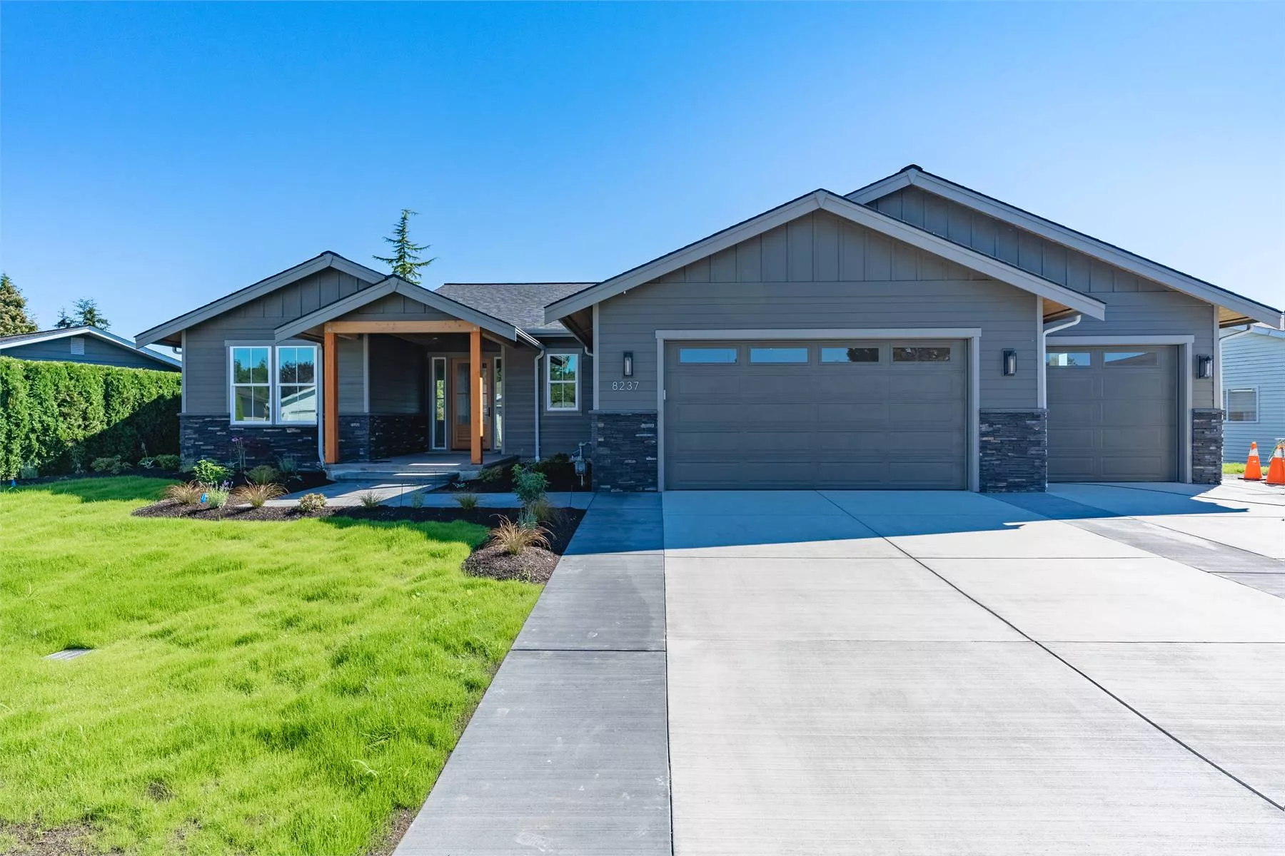 A timeless style mixed with some sleek finishing touches gives this lovely farmhouse-style home an unforgettable style. Perfectly designed for the new family looking to grow or the aging couple looking to downsize, the 1,924 square foot plan is both accessible and comfortable throughout. A single-story ranch layout makes everything only mere steps away. From the spacious great room with its vaulted cathedral ceilings to the gourmet kitchen with its beautiful island and sunny dining nook, there are so many areas to make countless memories. And be sure to explore the relaxation potential of the master suite along with the practical areas of the nearby 3-car garage and all its storage. No matter what you need, this plan has thought of it all!