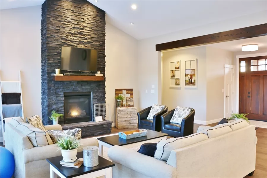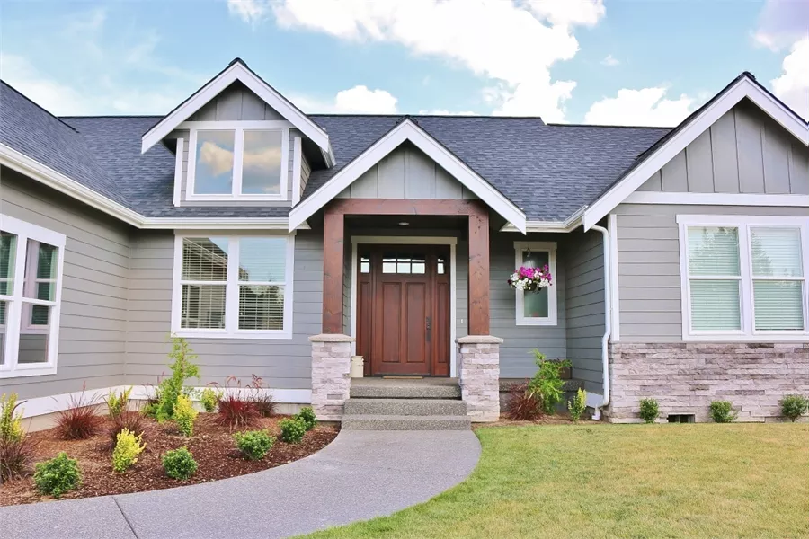 Masterfully designed to be both spacious yet cozy at the same time, this wonderful Craftsman style plan is an affordable and attractive option all the way around. This single-story home provides 3 bedrooms and 2.5 bathrooms, as well as a large bonus room and a 3-car garage, amongst its 2,148 square feet of living space. The journey begins as you step on to the covered front porch. Exposed wooden beams and sensible touches such as stone, give this home maximum curb appeal. Inside, you will find an open concept layout, featuring a private home office near the entryway, followed by the family room which joins with the dining room and island kitchen to create a truly inclusive space. Off of the living room you will find 2 bedrooms and a shared full bath, a great space for kids of all ages, as well as guests and family. The other side of the home finds the comfortable master suite. Kick back and relax after a long day by pampering yourself in the spa-style bath. Or get ready for another productive day at the office by looking your best thanks to the large walk-in wardrobe closet. This home also provides a comfortable covered rear porch and patio, along with an almost 300 square foot bonus room above.
